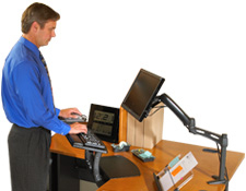 Lever-free lift and lock mechanism enables easy height adjustment. And the unique sit/stand feature allows for more variation in work positions, helping to reduce the chance for repetitive stress injuries. Compatible with ergonomic keyboards. For corner workstations or straight-on workstations that accept a 23" track.