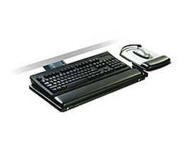 - Super adjustable separate mousing platform mounts left or right and needs no tools to adjust. Platform slides left and right over the keyboard, tilts forward and backward and adjusts up and down to the same level as the keyboard platform. Features 3M™ Precise™ Optical Mousing Surface.