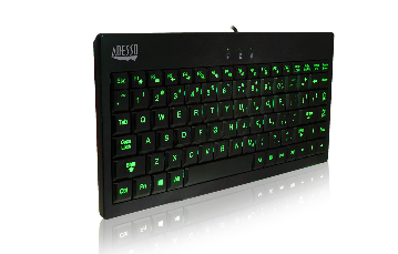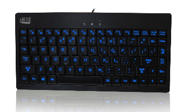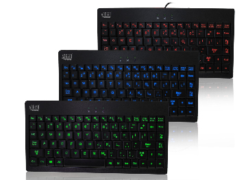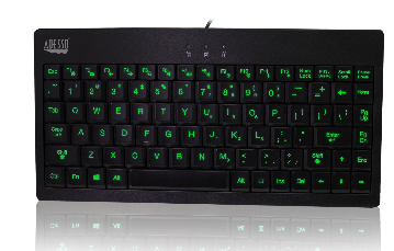 The Adesso® AKB-110EB 3-Color Illuminated Mini Keyboard is perfect for those who find themselves working late at night in dim or dark lighting environments. This keyboard features Illuminated backlit keys in 3 colors- Green, Blue and Red which can be accessed quickly and conveniently with a touch of a button. Dim, brighten, turn on, or turn off your backlit keys easily using hotkeys! Measuring less than 12” wide, it is also ideal for POS stations, sales, information kiosks, warehouses, or any small working environment.The The Adesso® AKB-110EB 3-Color Illuminated Mini Keyboard is designed with membrane key switches that provide a quieter and faster typing response and stands up to long-term usage!