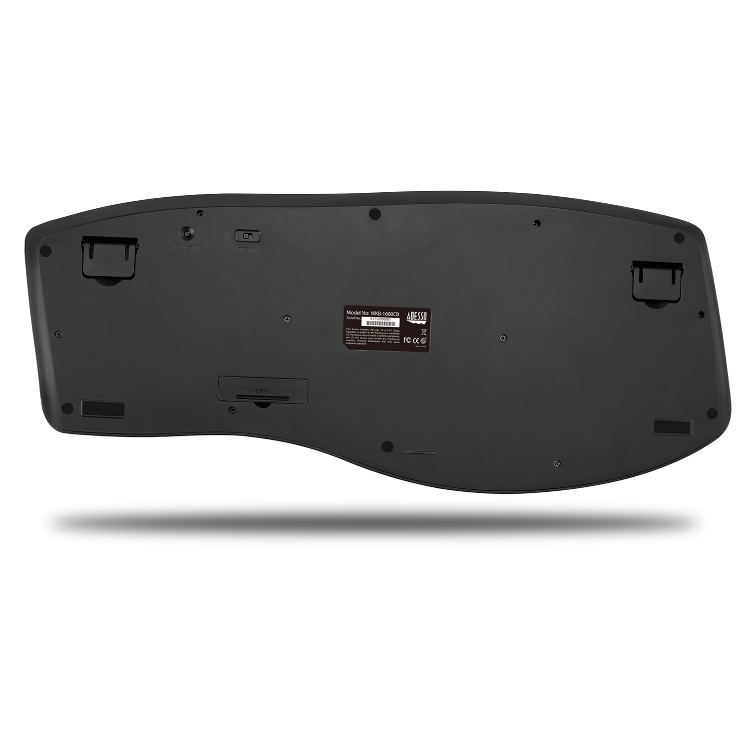 The Adesso Wireless Ergonomic Keyboard & Optical Mouse offer users two advanced input devices with ergonomic design, multifunctional features and a wireless range of up to 30 feet. The design of this keyboard with splitted key zones and gently sloped encourages natural position of hands, wrists, and forearm in maximum comfort for long use. The new chiclet keycap with its larger keycap surface makes typing easier and blends in with the keyboard to make a stylish design. The included wireless optical mouse not just provides comfortable ergonomic design but also equips with a DPI switch for changing resolution (800/1200/1600) and two Internet navigation buttons.
