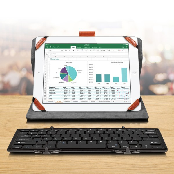 Aluratek's Portable Ultra Slim Foldable Bluetooth Keyboard is the perfect accessory to wirelessly transform your tablet into your own personal laptop. Wirelessly connect to any Bluetooth enabled iPhone, smartphones, iPad, tablets, PC laptops and computers for seamless typing and navigation. This ultra-slim foldable keyboard is the perfect travel companion for when you take your tablet on the road. The lightweight, stylish Bluetooth keyboard allows you to carry it in your bag anywhere you go.