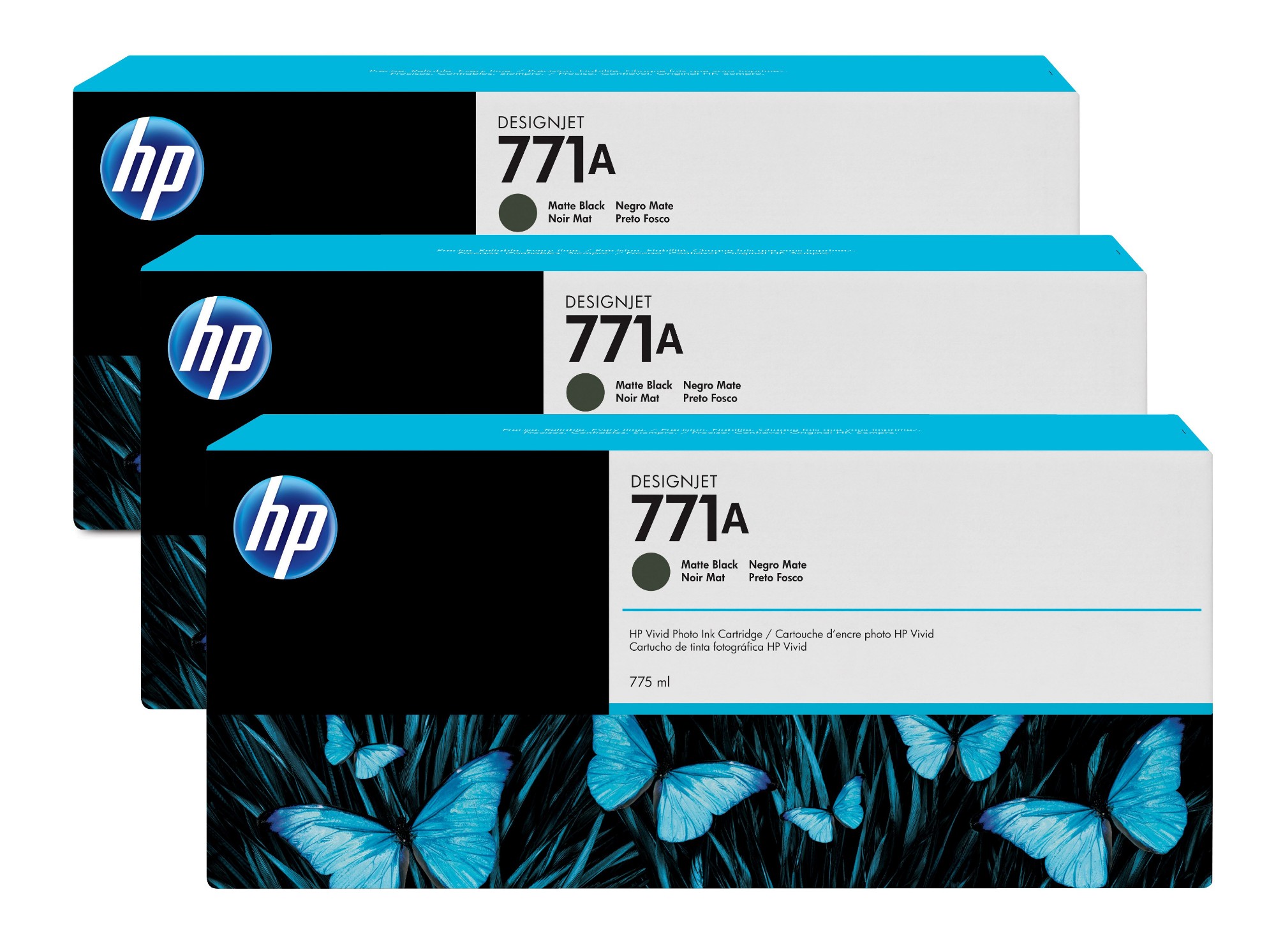 HP 771A 3-pack 775-ml Matte Black DesignJet Ink Cartridges, HP DesignJet Z6200, Z6610, Z6810, Thermal inkjet, Black, Small medium business, Singapore, 8.5" (216 mm)