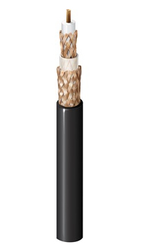 Triax 50Ω RG-8/U Type, 11 AWG (7x19) bare copper conductor, foam polyethylene insulation, bare copper braid shield (95%), PE Insulation, Bare Copper Braid (80%), polyethylene jacket