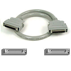 The micro DB50 male-to-micro DB50 male SCSI II Cable lets you interface any two SCSI I/II devices (e.g., a scanner and a CD-ROM drive), both with micro DB50 female ports.