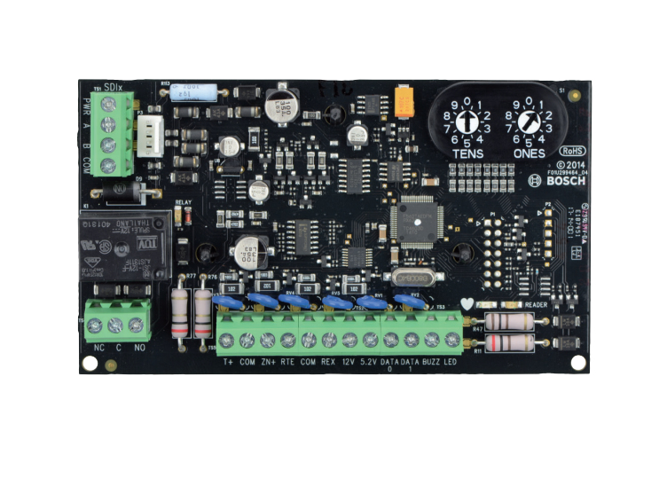The B901 Access Control Interface Module is a fully supervised, addressable SDI/SDI2 bus device that allows access control integration for Bosch compatible control panels. This module offers 14 programmable levels of access authority. Authority for access is controlled by the user level, the group of the user, the time of day, the door state, and the area armed state.