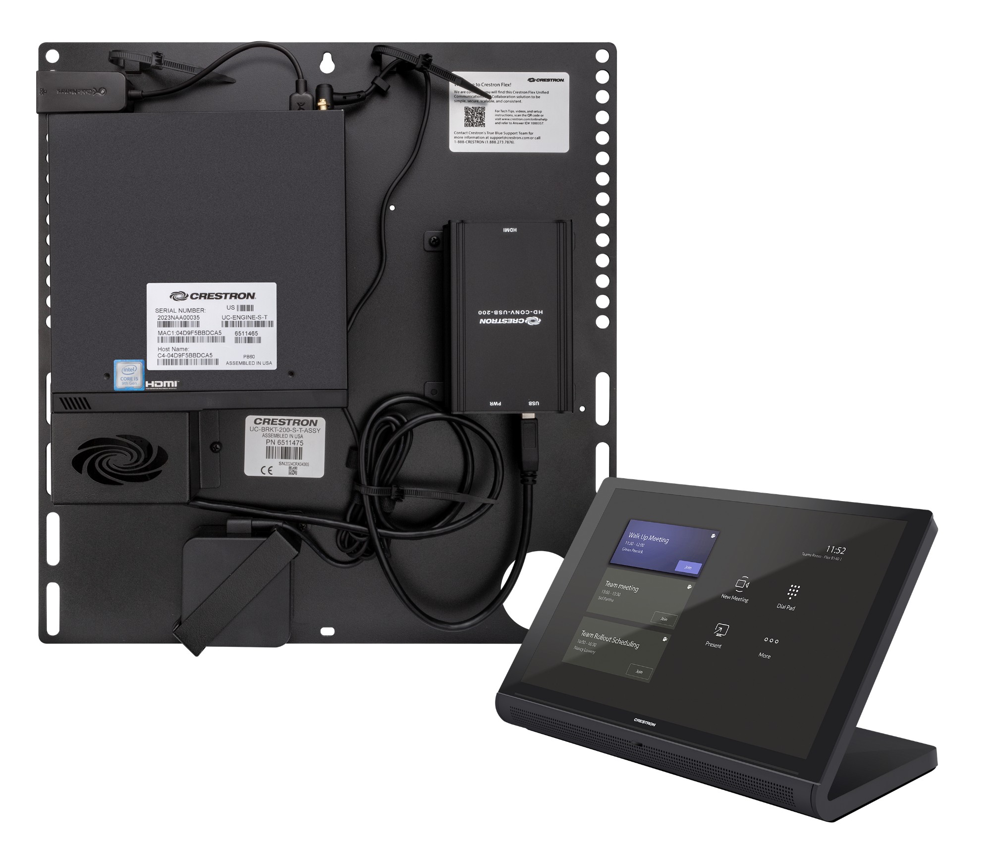 The UC-C100-T can integrate with a Crestron control system to enable touch screen control of room lighting, motorized window shades, climate control, AV, and other amenities.