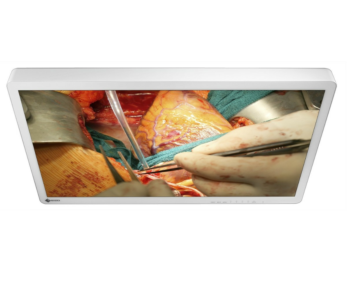 Operating rooms contain various medical devices that are arranged according to the type of surgery. Safe handling and a sterile environment play a major role. EIZO's surgical monitors adopt a flat design with rounded corners that promotes a safe environment and easy cleaning and disinfection. Furthermore, the front is covered with a fully flat protective glass with IP45 for protection against foreign material and splashes (the whole monitor has an IP32 rating).