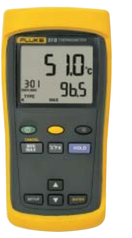 Fluke 51 II Single Input Digital Thermometer offers fast response and laboratory accuracy (0.05% + 0.3°C) in a rugged, handheld test tool.