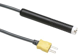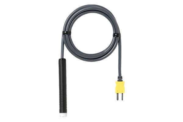 Fluke temperature probes expand the functionality of Fluke thermometers. The 80PK-3A Type K Thermocouple Surface Probe is designed for measuring the temperature of flat or slightly convex surfaces, with an exposed junction to allow direct contact with the surface being measured. The probe can be used with any temperature-measuring instrument that is designed to accept type K thermocouples and has a miniature connector input.