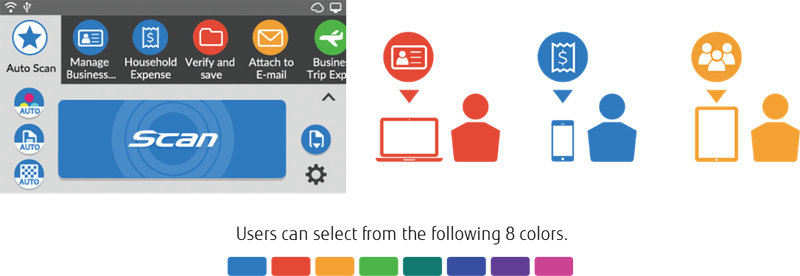 You can complete processes from scanning to data utilization with just “one touch” of the 4.3 inch touch screen. Basic tasks such as setup and Wi-Fi configuration, checking scanning statuses and choosing save-to destinations are easy even for first-time users with the touch screen's easily understandable icon simplicity. Up to 30 pre-configured profiles can be made, optimizing scan workflow.