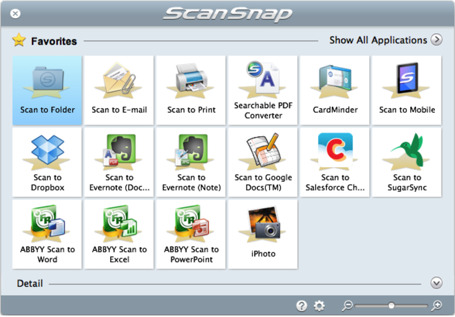 ScanSnap is the only scanner that does not require your application to feature a scan interface. If your application handles PDF or JPEG files, simply create a new ScanSnap profile scanning within the application. You can also use the new ScanSnap Folder, by using the import capability of your application. This makes scanning to cloud applications a breeze! Browse to the ScanSnap Folder located under My Computer and hit the blue scan button. Now, your file can be imported in your application and it will be deleted from the ScanSnap Folder automatically!