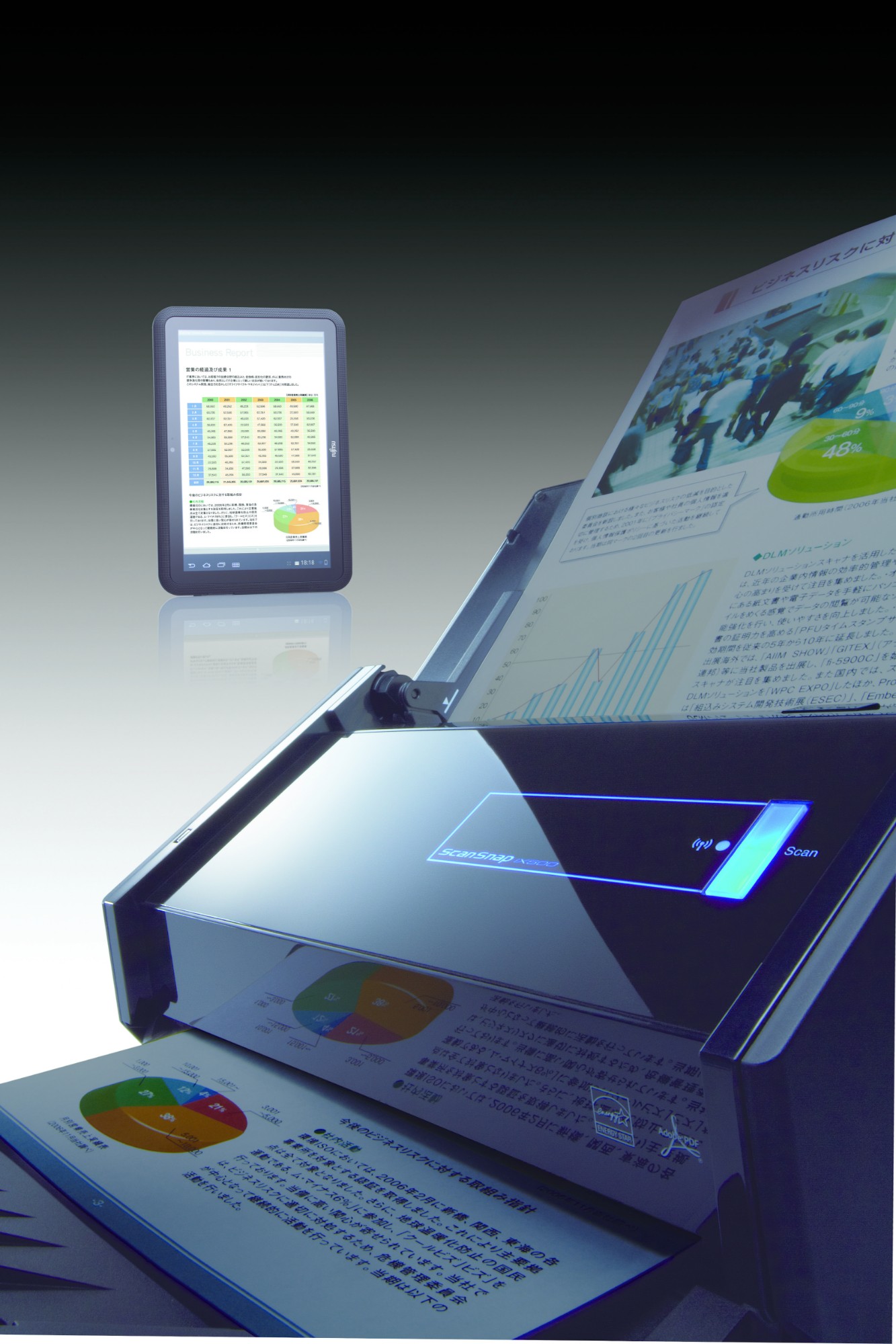 For the first time the ScanSnap iX500 offers the ability to scan to a smart device without the need for a host PC or notebook via a Wi-Fi connection. Download the ScanSnap Connect Application free of charge from the official application distribution services and then scan, save and distribute your documents direct to your iPad, iPhone or Android device in the matter of seconds.