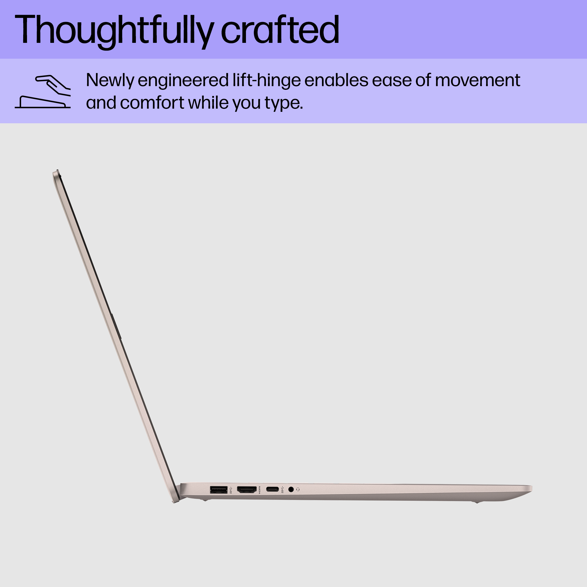 Enjoy the 17.3-inch diagonal high-res, narrow-bezel screen with lift-hinge keyboard for more natural typing.