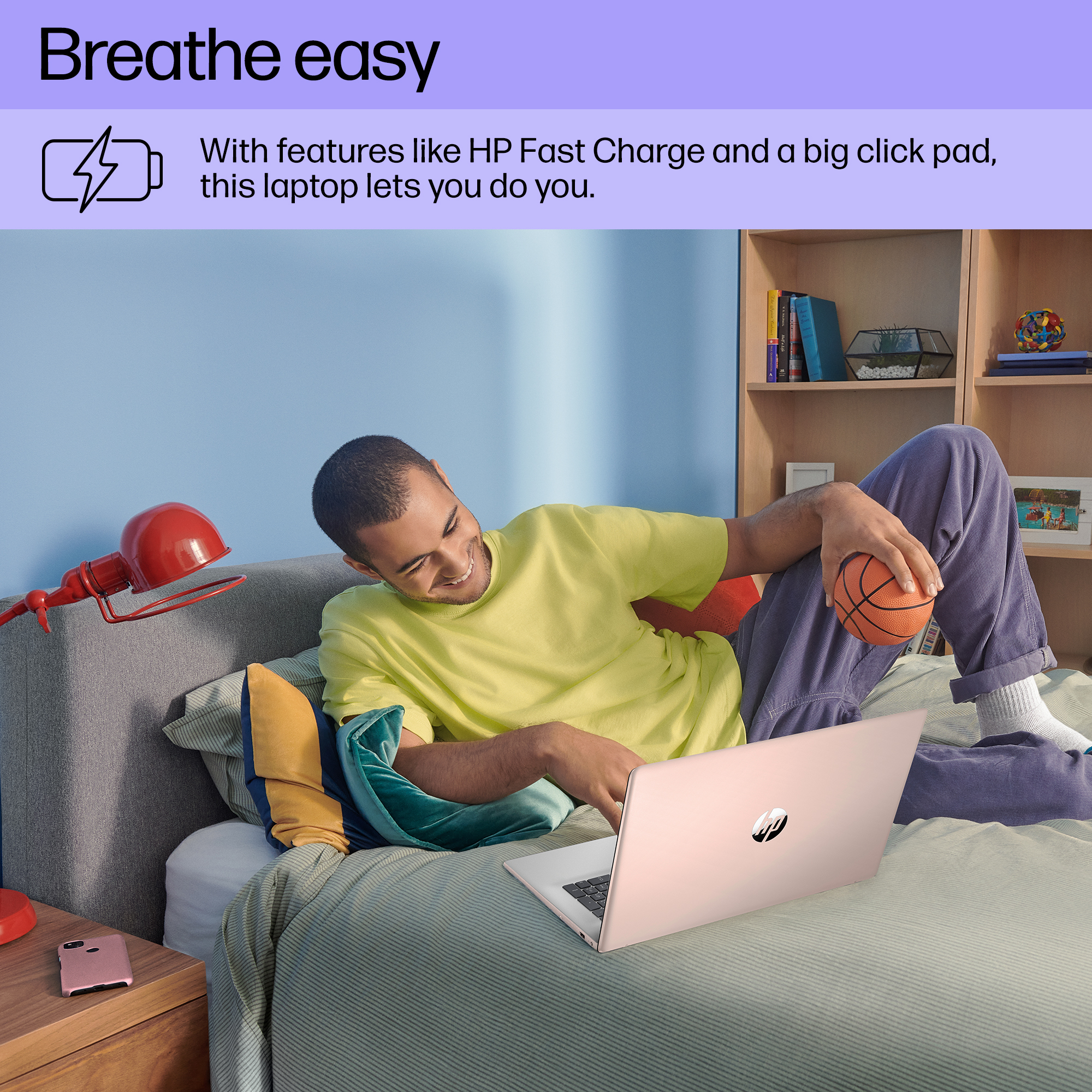 With comforts like an enlarged click pad and HP Fast Charge<sup>[4]</sup>, you can get back to creating, watching, doing.