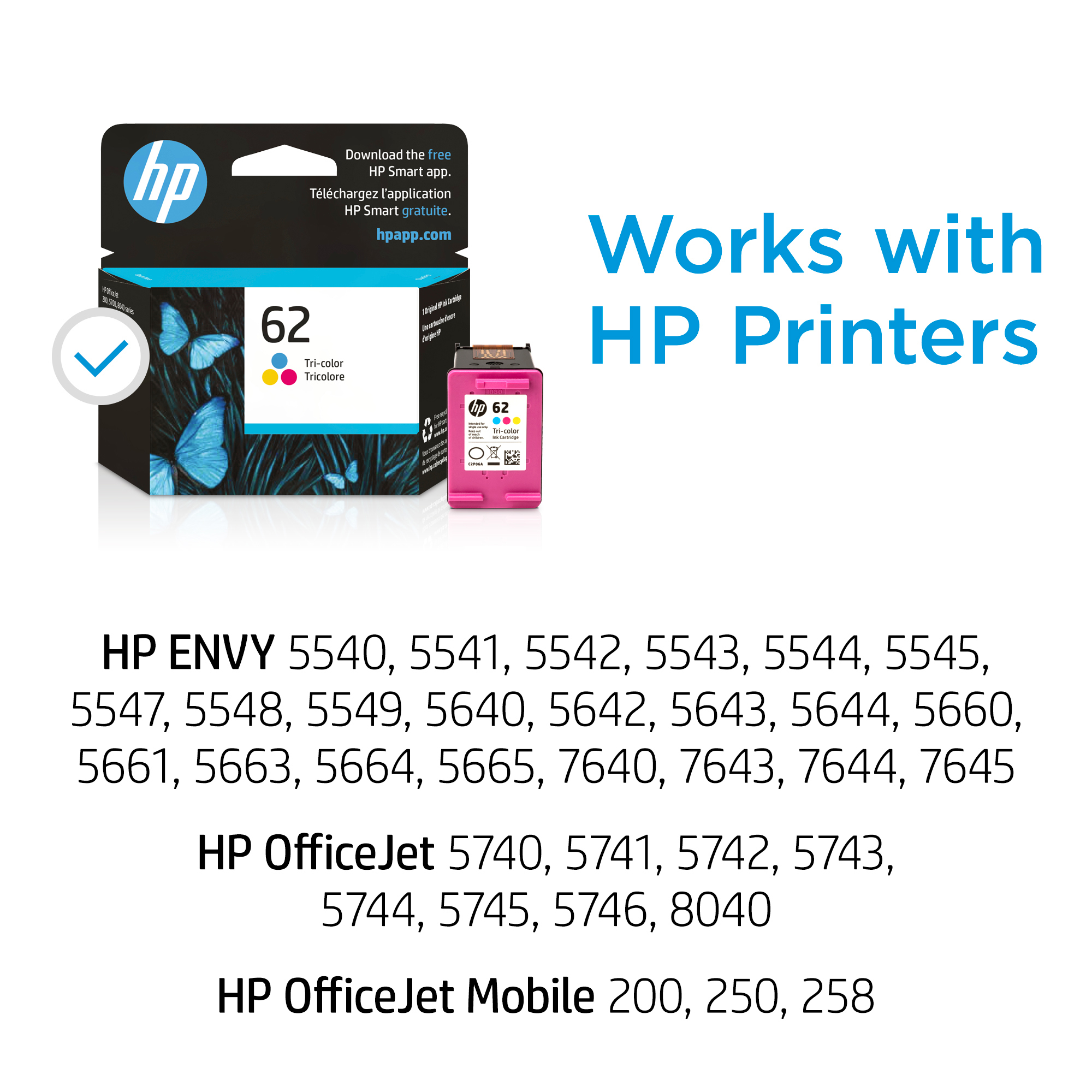 HP 62 Tri-color Original Ink Cartridge. Colour ink type: Pigment-based ink, Printing colors: Cyan, Magenta, Yellow, Quantity per pack: 1 pc(s)