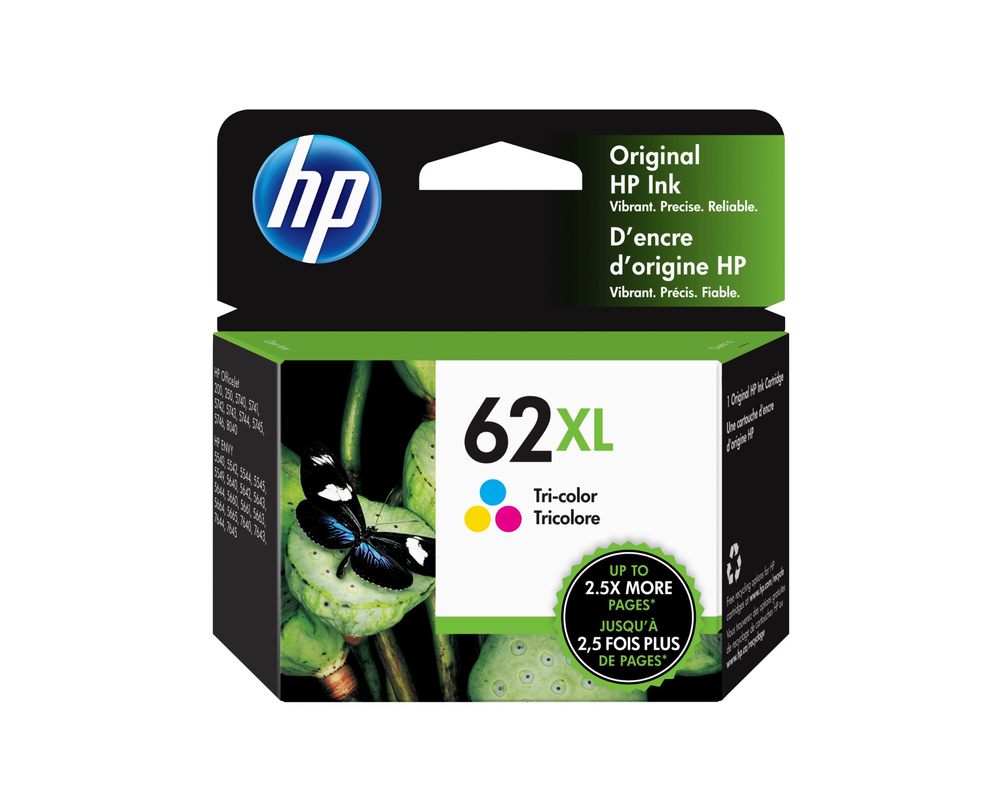 HP 62XL High Yield Tri-color Original Ink Cartridge. Colour ink type: Pigment-based ink, Printing colors: Cyan, Magenta, Yellow, Quantity per pack: 1 pc(s)