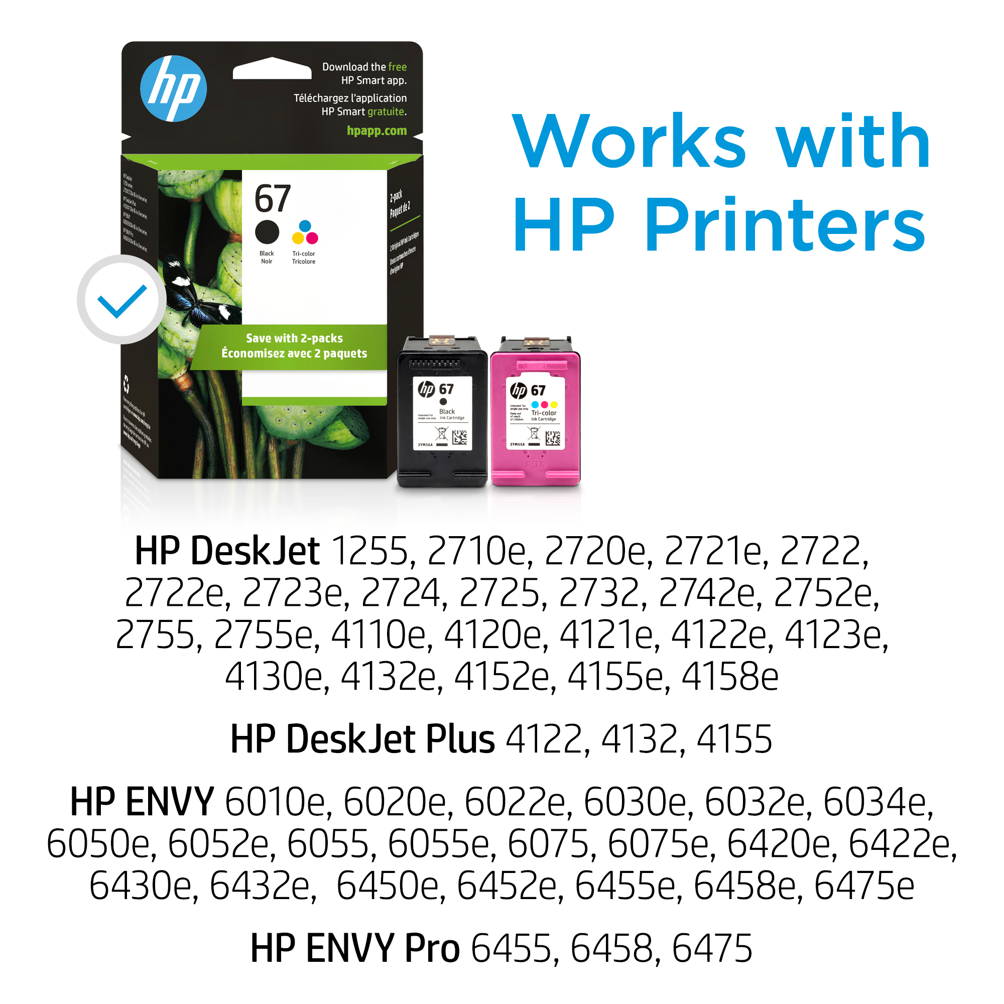 HP 67 2-pack Black/Tri-color Original Ink Cartridges, Standard Yield, Black, Cyan, Magenta, Yellow, Pigment-based ink, Dye-based ink, 2 ml, 2 ml