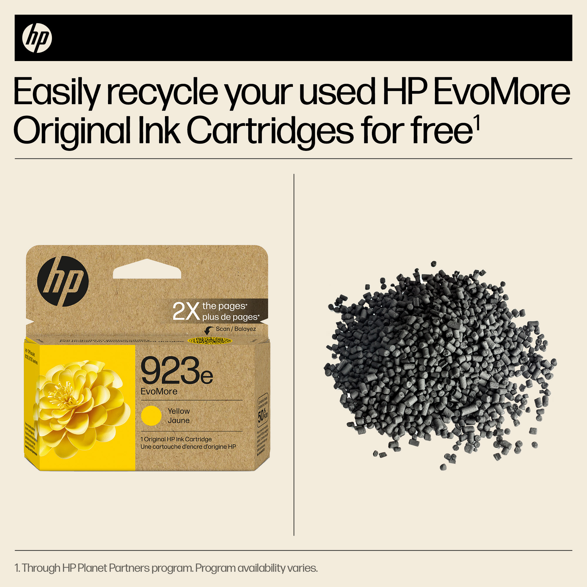 HP 923e EvoMore Yellow Original Ink Cartridge, High (XL) Yield, Yellow, 1 pc(s), 800 pages, Single pack