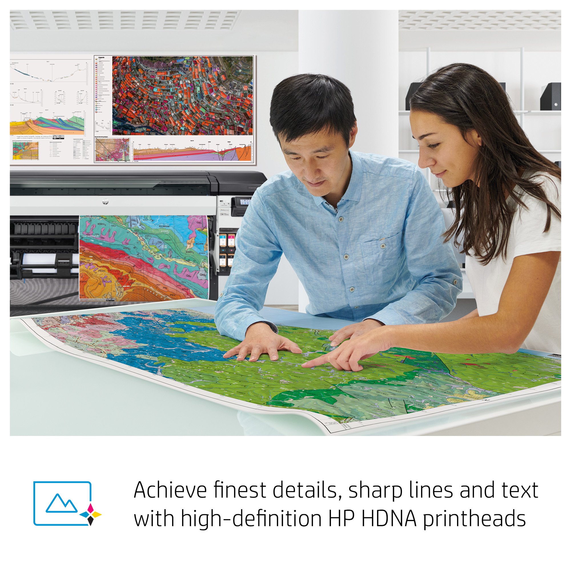 Achieve finest details, sharp contour lines and text with high-definition HP HDNA printheads.[1]