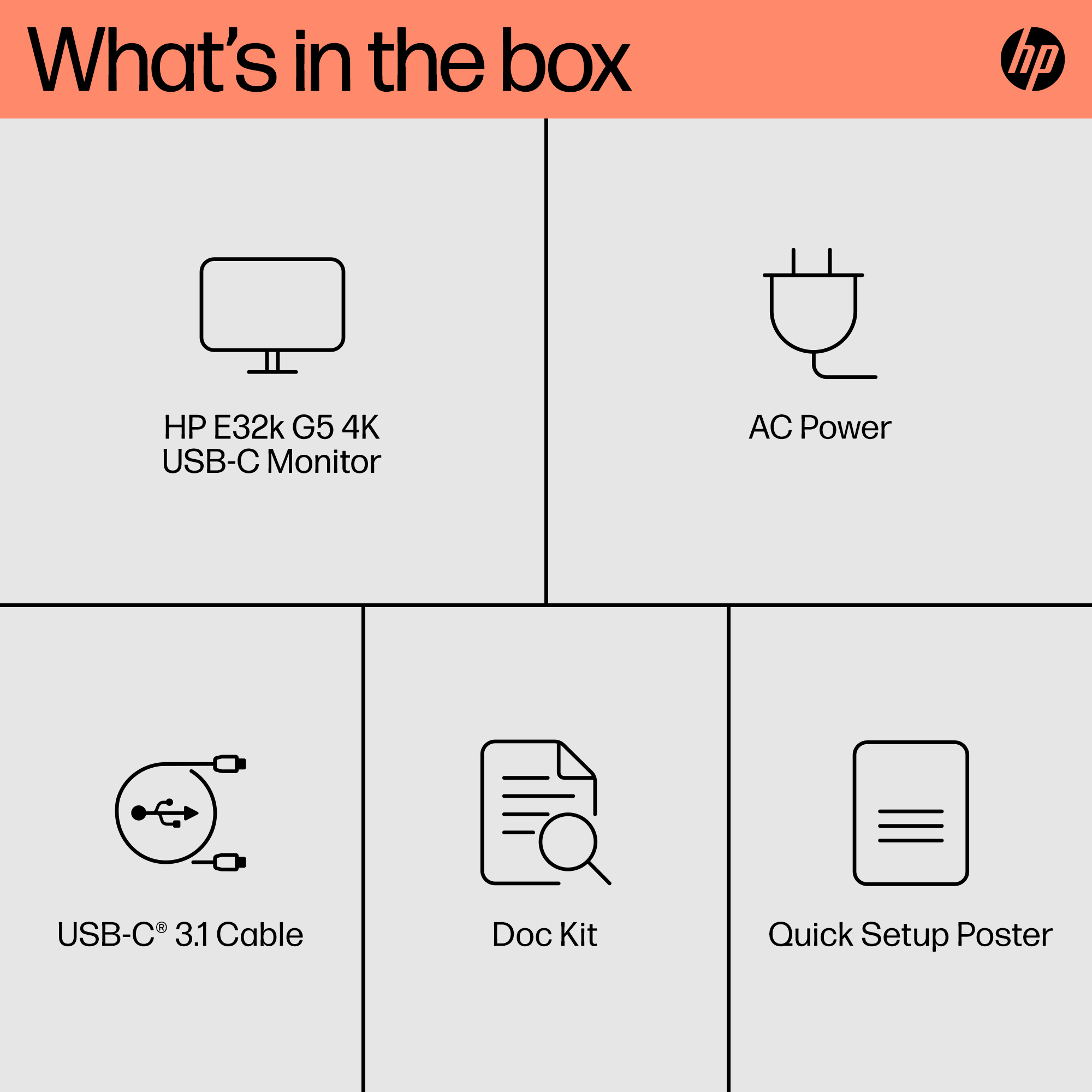 | Box contents | Monitor; Warranty card; Quick Setup Poster; 1 USB Type-C️ to Type-C cable; AC power cord |