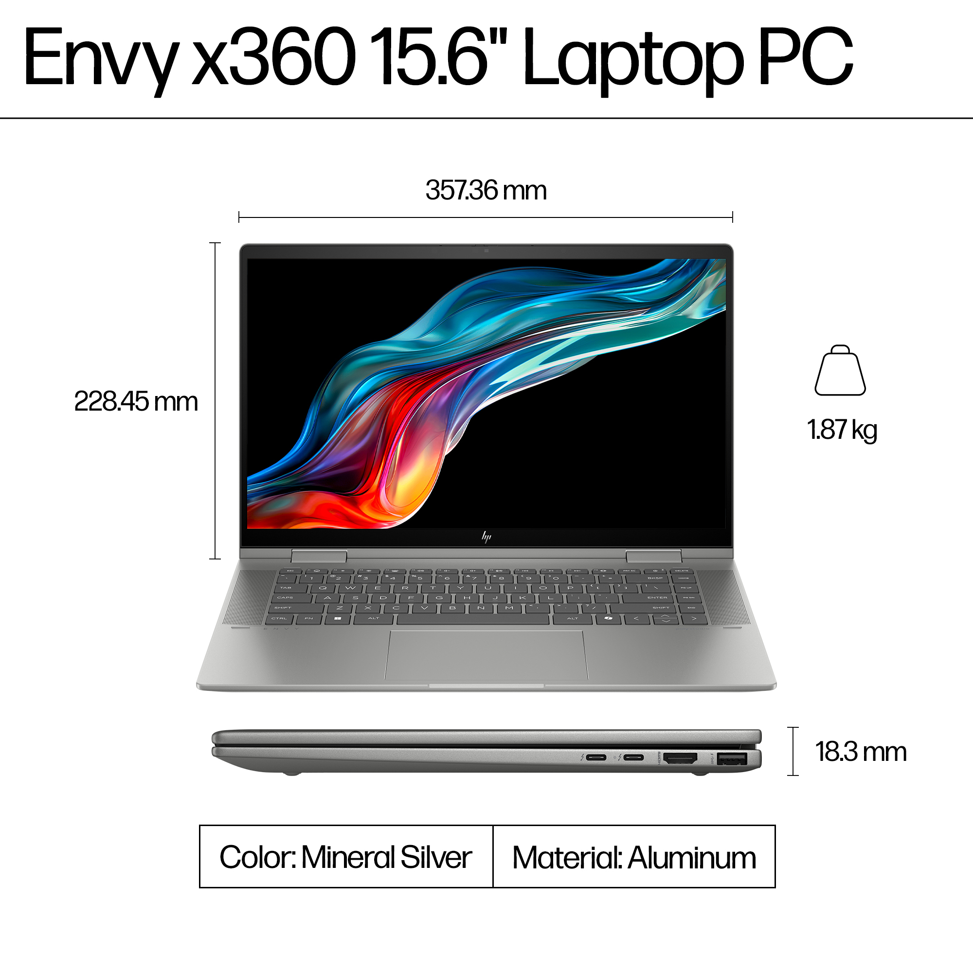 HP ENVY x360 15-fe1073cl Intel Core Ultra 7 155U Laptop 15.6" Touchscreen Full HD 32 GB LPDDR5-SDRAM 1 TB SSD Wi-Fi 6E (802.11ax) Windows 11 Home Silver