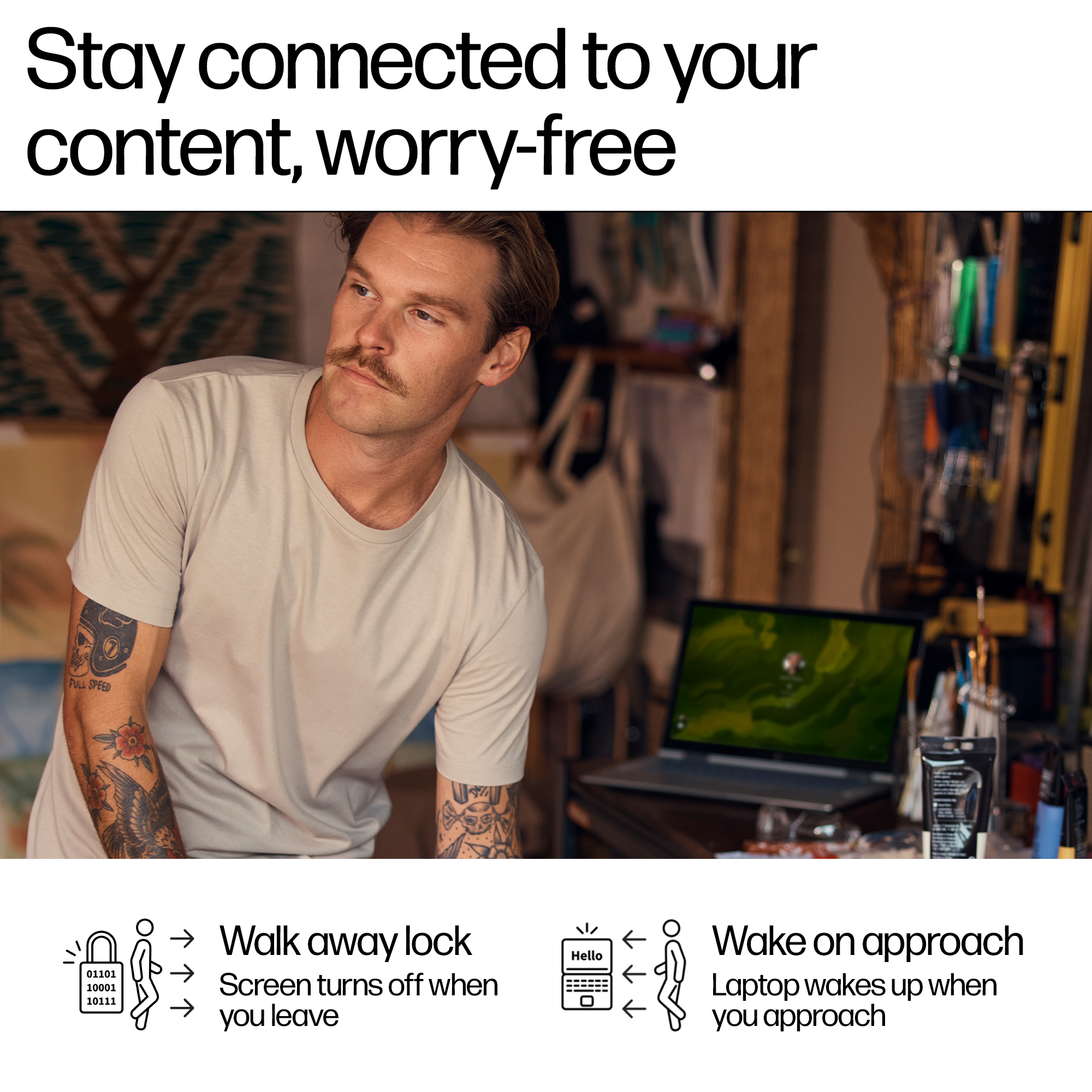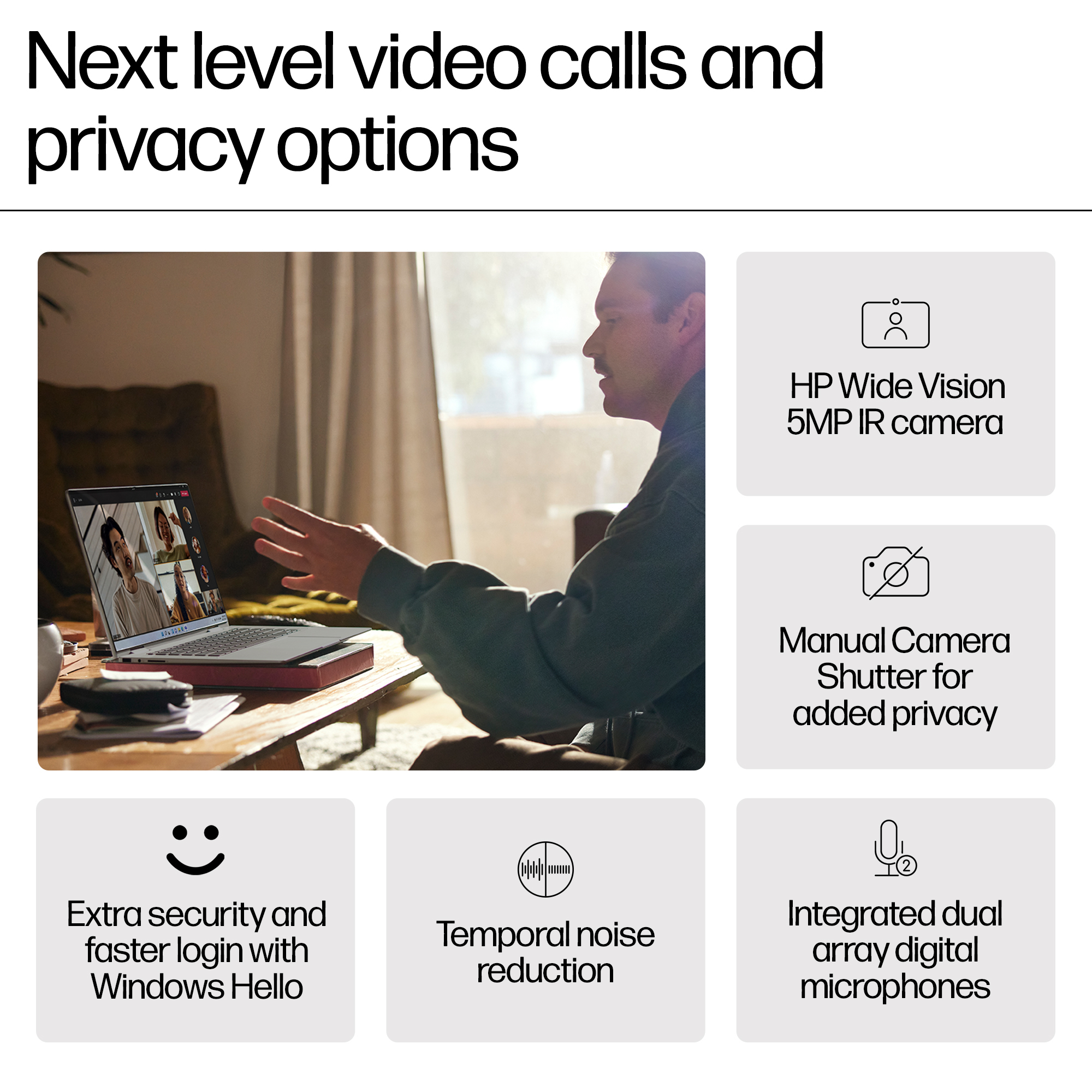 This laptop layers built-in security with privacy features, like the Privacy Shutter Door and walk away lock.