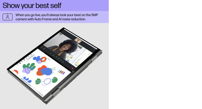 Experience clear video chats with AI Noise Reduction, and a 5MP camera<sup>[2]</sup> with Auto Frame and privacy shutter.