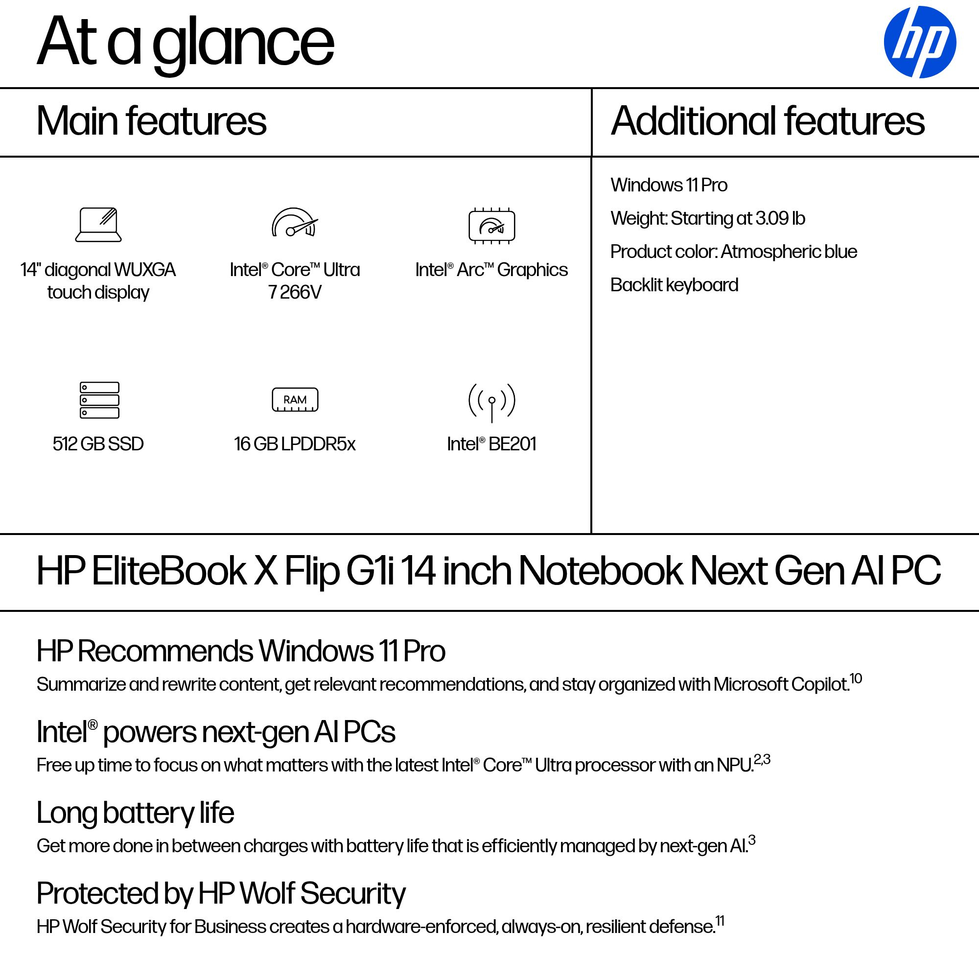 HP EliteBook X Flip G1i 14 inch Notebook Next Gen AI PC Copilot+ PC Intel Core Ultra 7 266V 14" Touchscreen WUXGA 16 GB LPDDR5x-SDRAM Wi-Fi 7 (802.11be) Windows 11 Pro