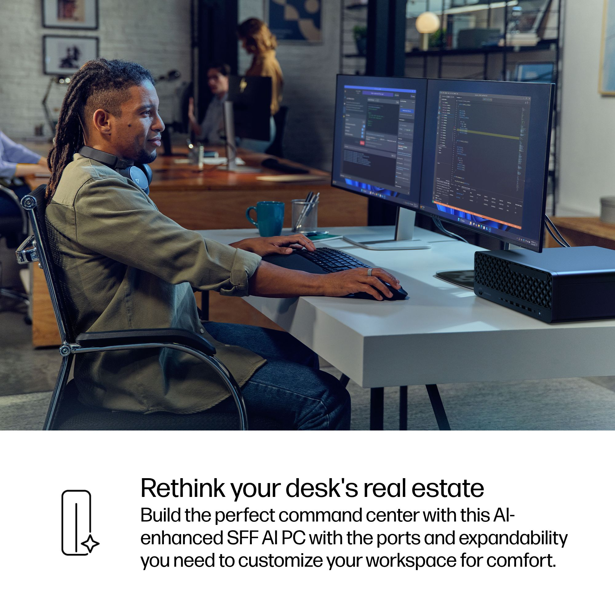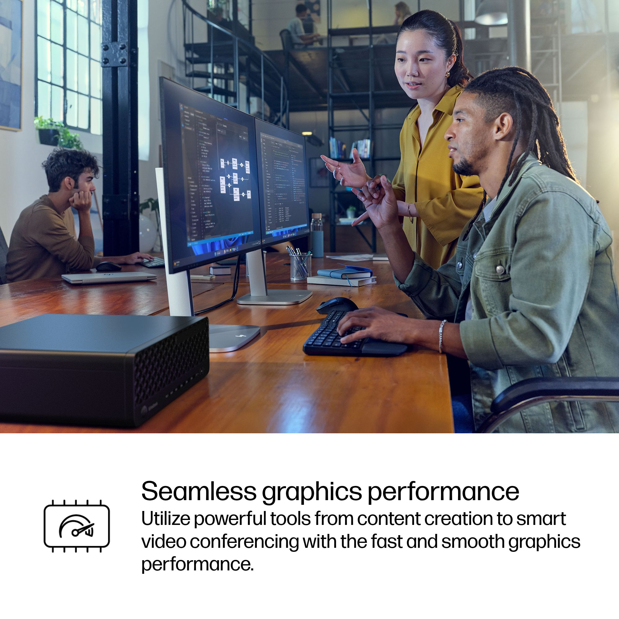 The small design offers scalability and connectivity for seamless multitasking in limited office spaces.