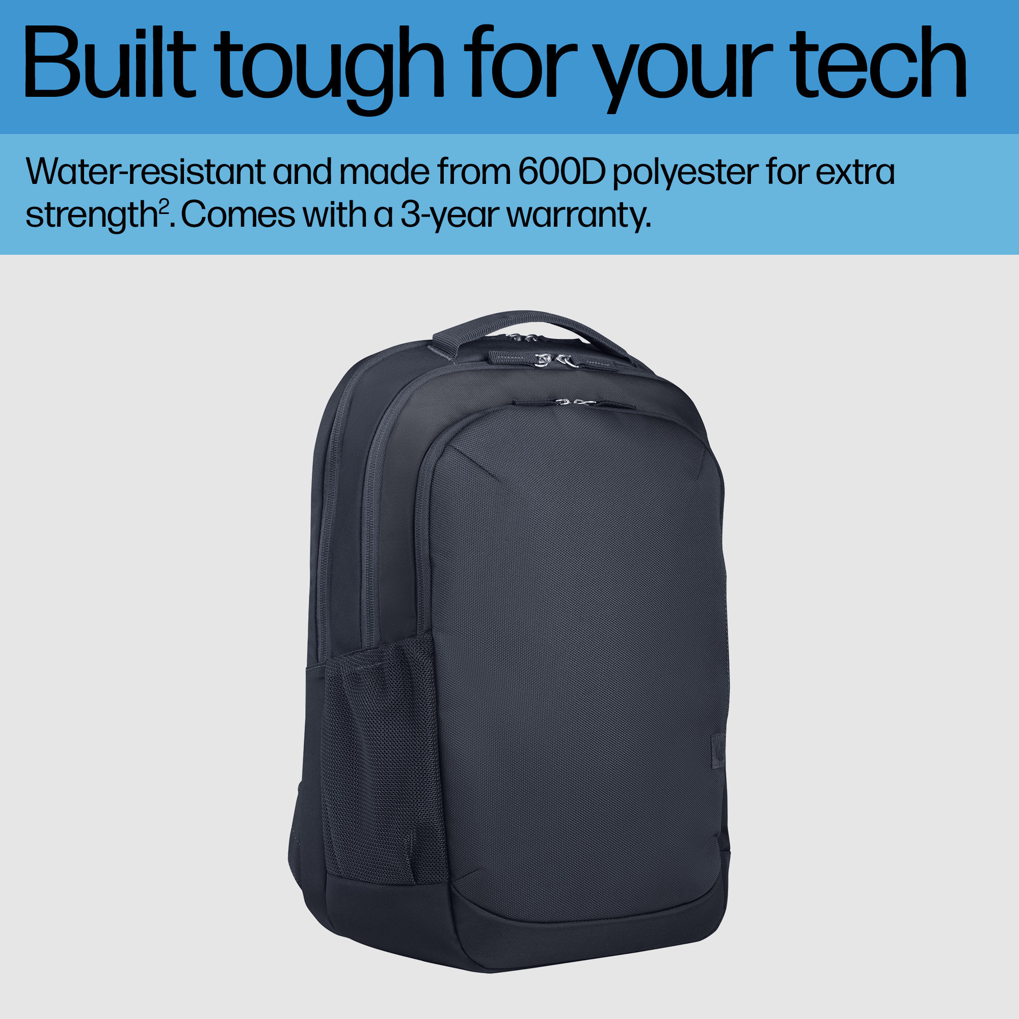 Feel confident your tech is protected when you're on the move with this durable 16-inch laptop backpack.<sup>[1]</sup> Water-resistant and made from 600D polyester for extra strength<sup>[2]</sup>, it includes a padded laptop compartment to guard against bumps and scratches and comes with a 3-year warranty.