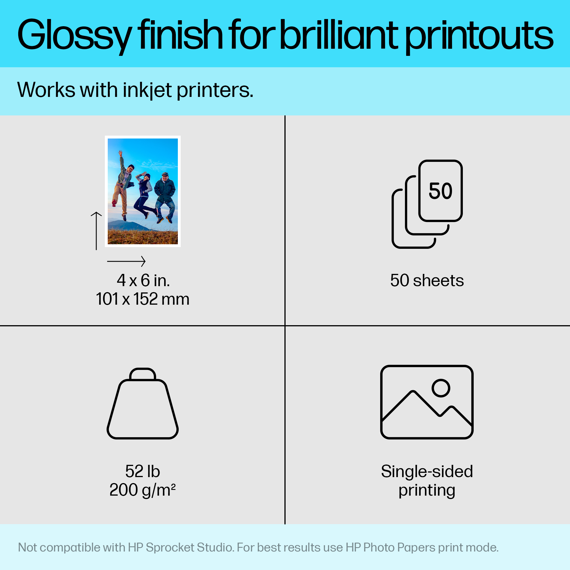 HP Everyday Photo Paper, Glossy, 52 lb, 4 x 6 in. (101 x 152 mm), 50 sheets