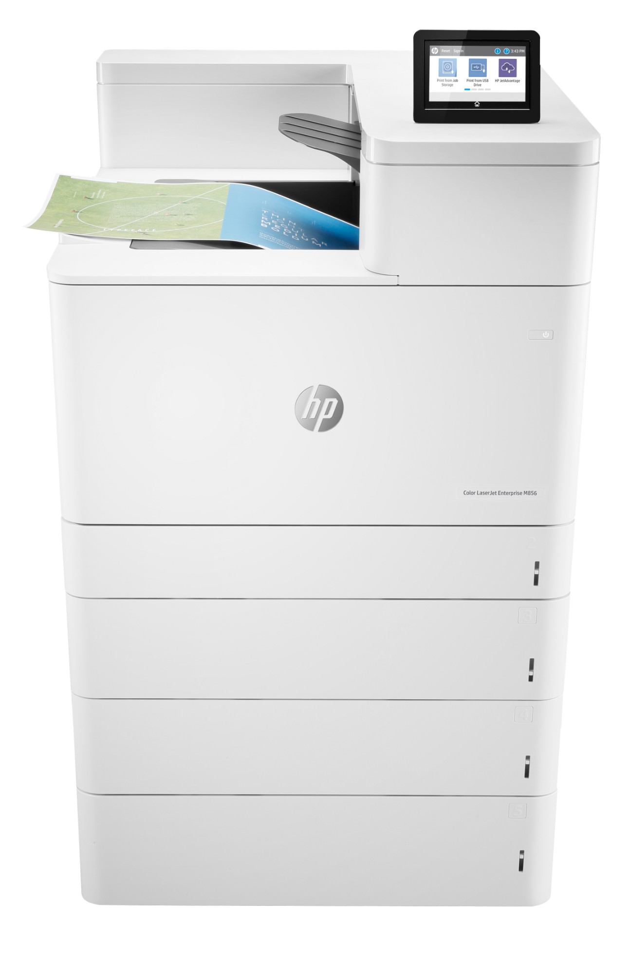| Box contents | HP Color LaserJet Enterprise M856x printer; HP Black Original LaserJet Toner Cartridge (~16,000 pages), HP Cyan, Magenta and Yellow Original LaserJet Toner Cartridges (~13,000 pages each), and 4 HP Original LaserJet Imaging Drums (~65,000 pages each color); Getting started Guide; 1 Power cord |