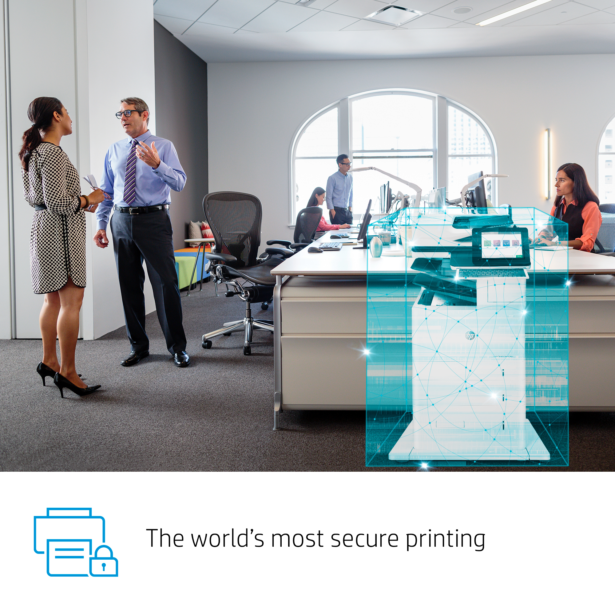 HP Security toolsIdentity management: Kerberos authentication; LDAP authentication; 1000 user PIN codes; optional HP and 3rd party advanced authentication solutions (e.g.; badge readers); Network: IPsec/firewall with Certificate; Pre-Shared Key; and Kerberos authentication; Supports WJA-10 IPsec configuration Plug-in; 802.1X authentication (EAP-PEAP; EAP-TLS); SNMPv3; HTTPS; Certificates; Access Control List; Data: Storage Encryption; Encrypted PDF & Email (uses FIPS 140 validated cryptographic libraries from Microsoft); Secure Erase; SSL/TLS (HTTPS); Encrypted Credentials; Device: Security lock slot; USB port disablement; hardware integration pocket for security solutions; Intrusion Detection with Red Balloon Security Technology - Constant in-device monitoring for attacks; SureStart Secure Boot - BIOS Integrity Checking with self-healing capability; Whitelisting - loads only known good code (DLLs, EXEs, ...); Security management: Compatible with HP JetAdvantage Security Manager, Device Security Syslog Messages processed and accessable in Arcsight and Splunk SIEMs