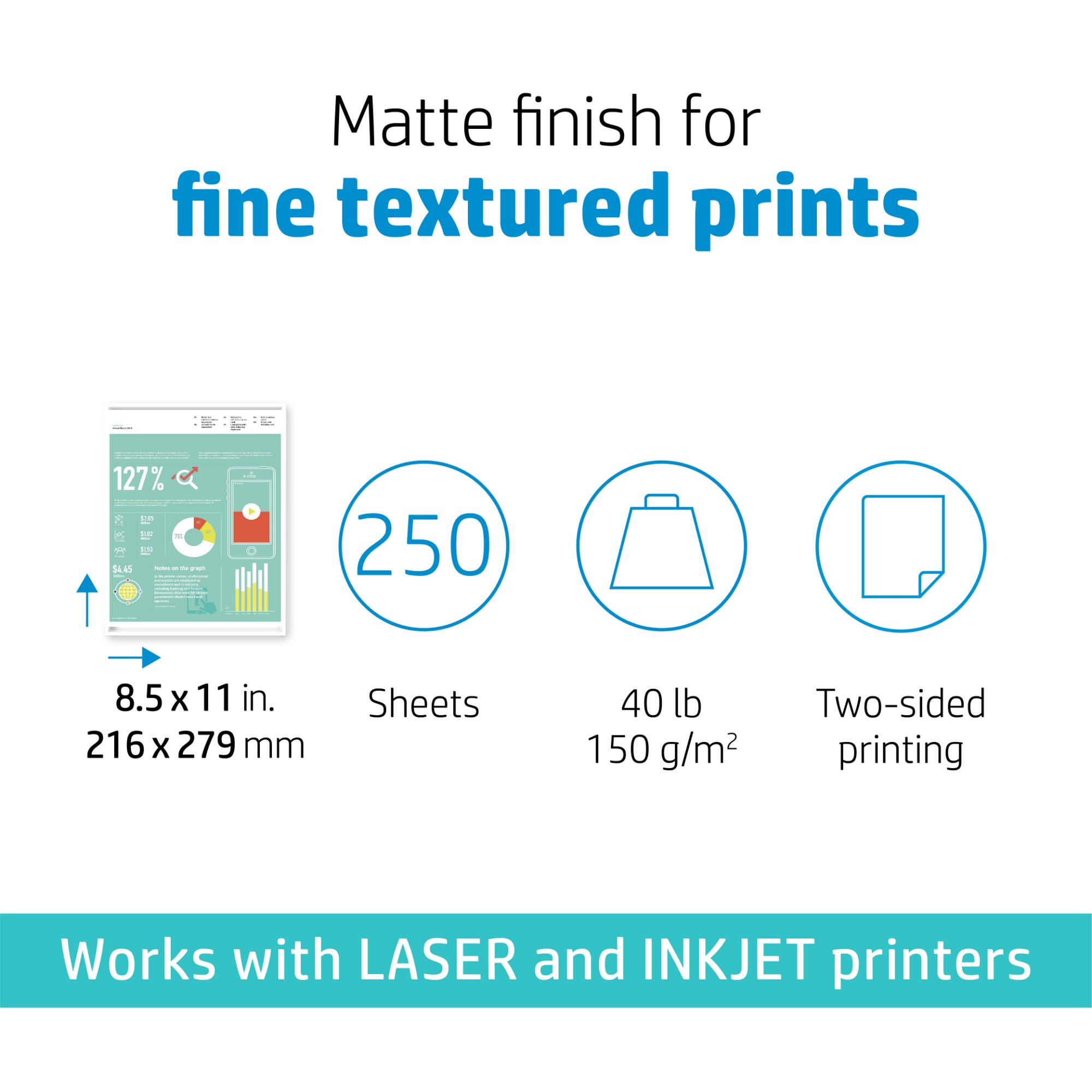 | Compatible products | Works with laser and inkjet printers, optimized for Original HP Toner and Ink |