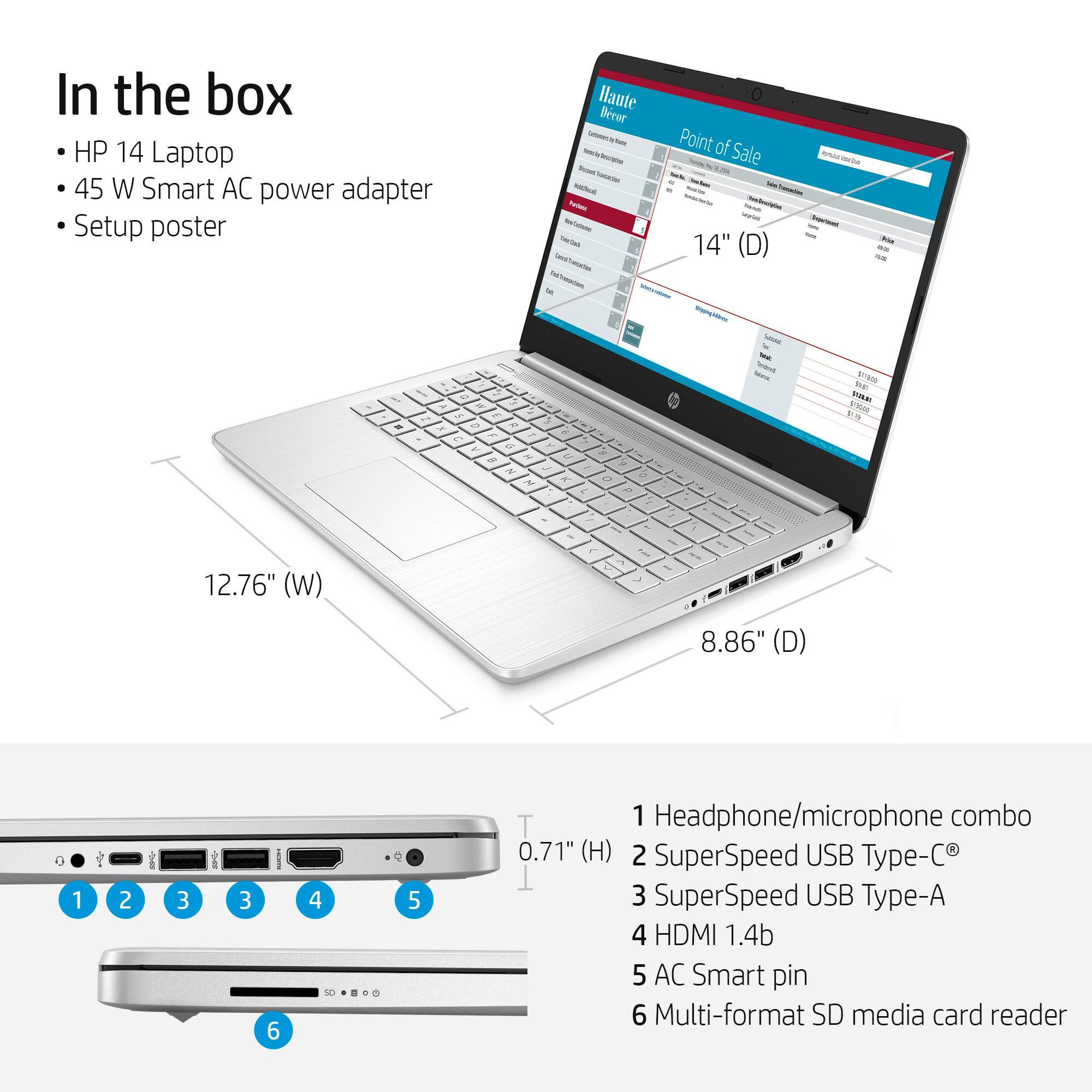 | Display diagonal (metric) | 14" (35.6 cm) |