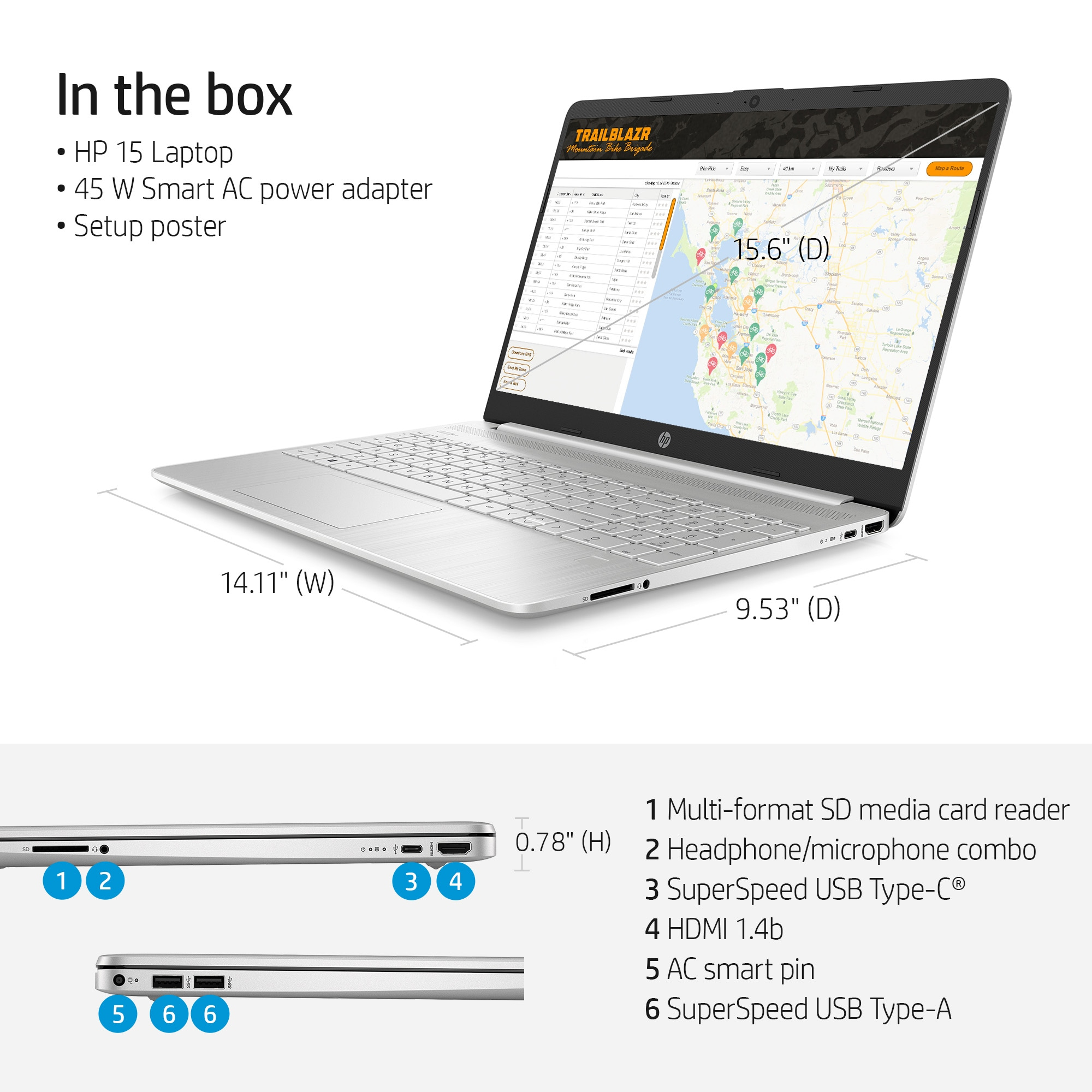 HP Laptop 15-ef2021ds. Processor family: AMD Ryzen™ 3, Processor model: 5300U. Display diagonal: 15.6", HD type: HD, Display resolution: 1366 x 768 pixels. Internal memory: 8 GB, Internal memory type: DDR4-SDRAM