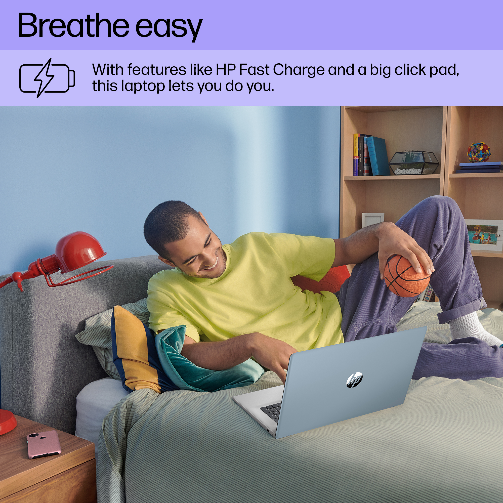 With comforts like an enlarged click pad and HP Fast Charge<sup>[4]</sup>, you can get back to creating, watching, doing.