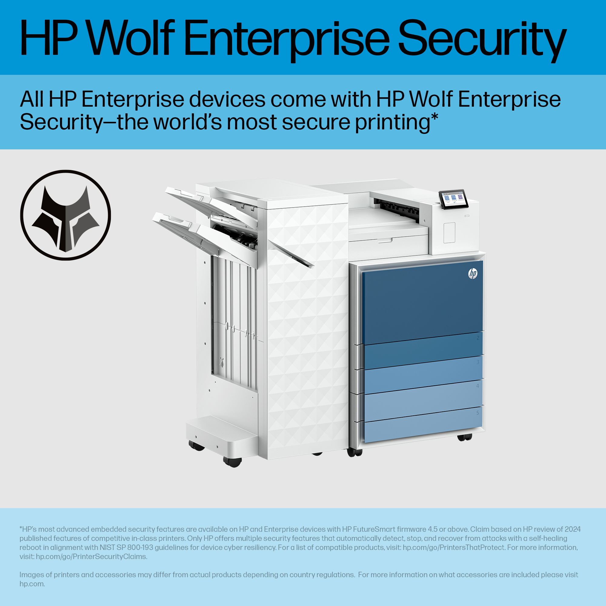 Your work is secure with HP Wolf Security[4], silently detecting and repairing your printer from cyber attacks.