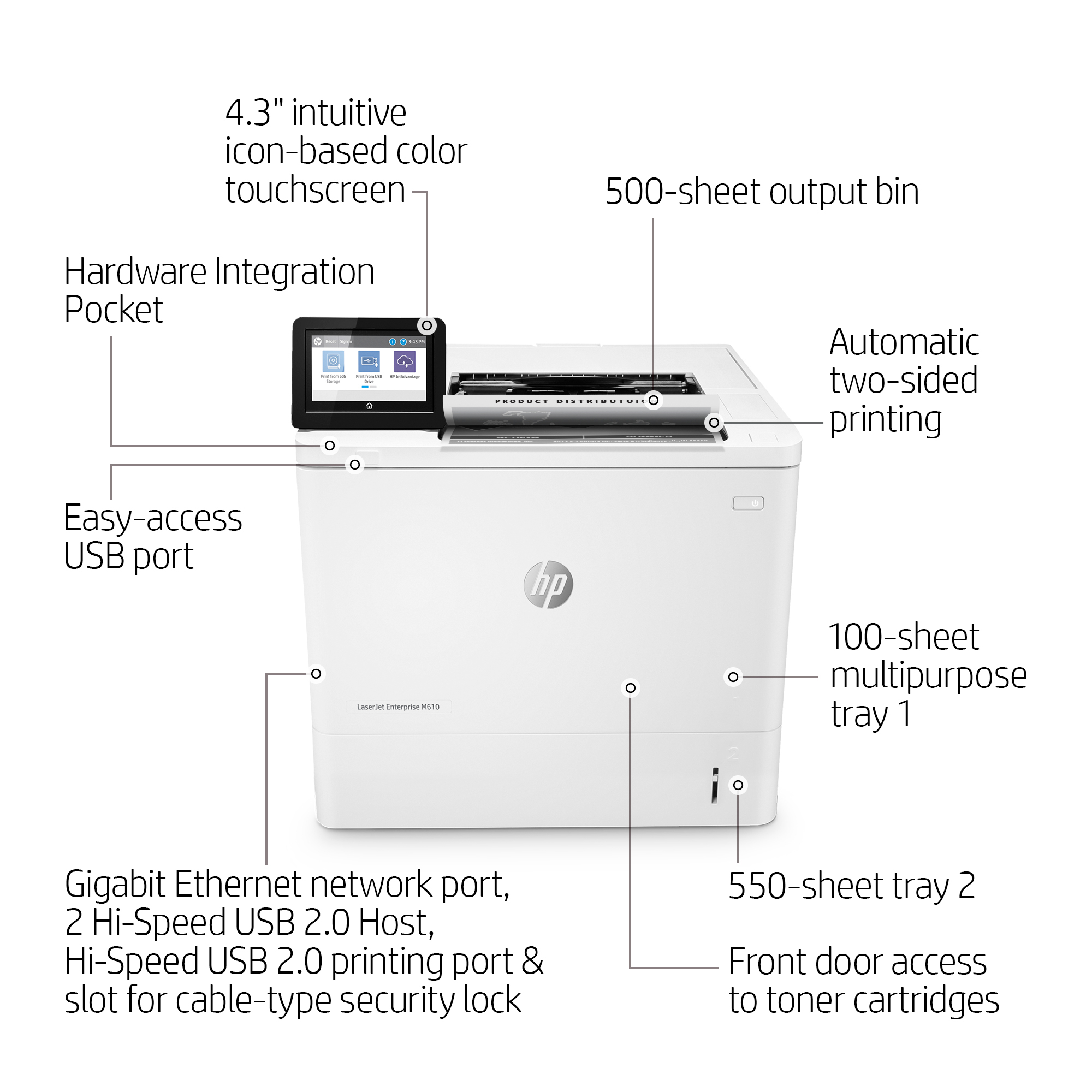 HP LaserJet Enterprise M610dn Black and white Printer, Ethernet Only; Duplex