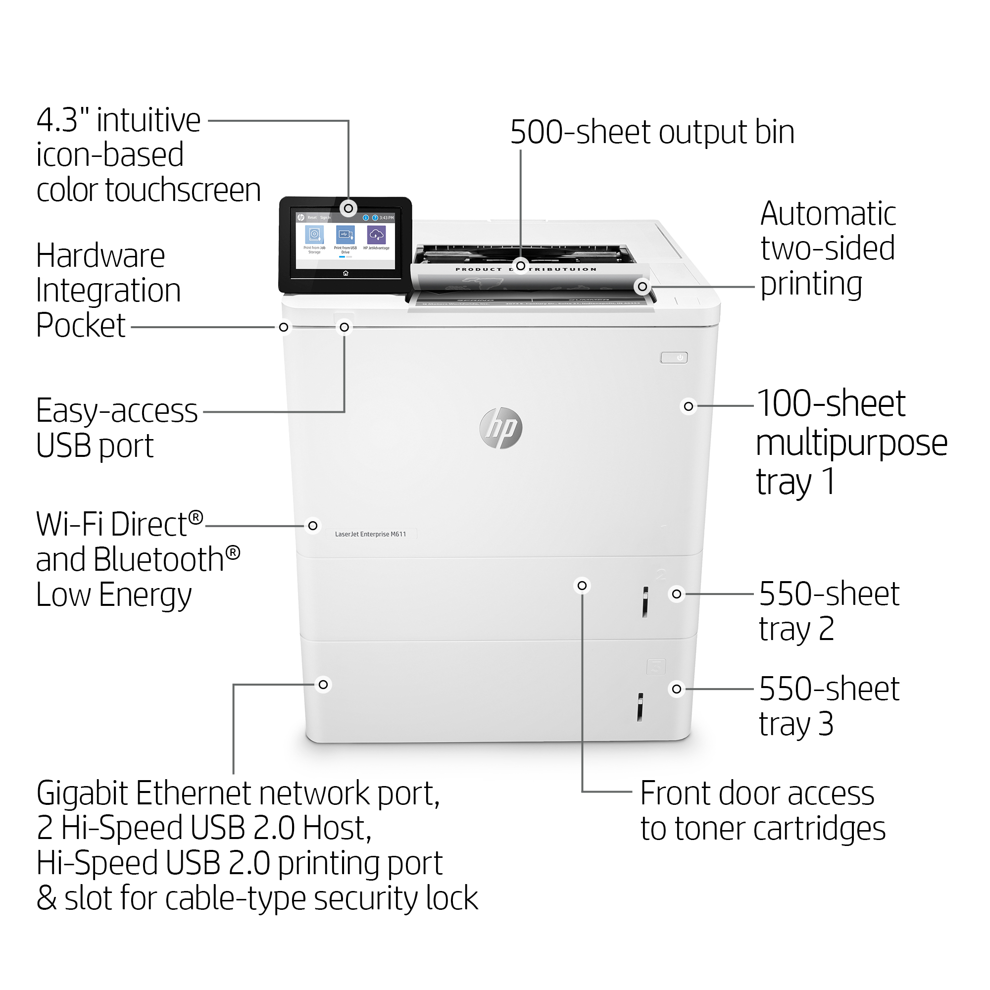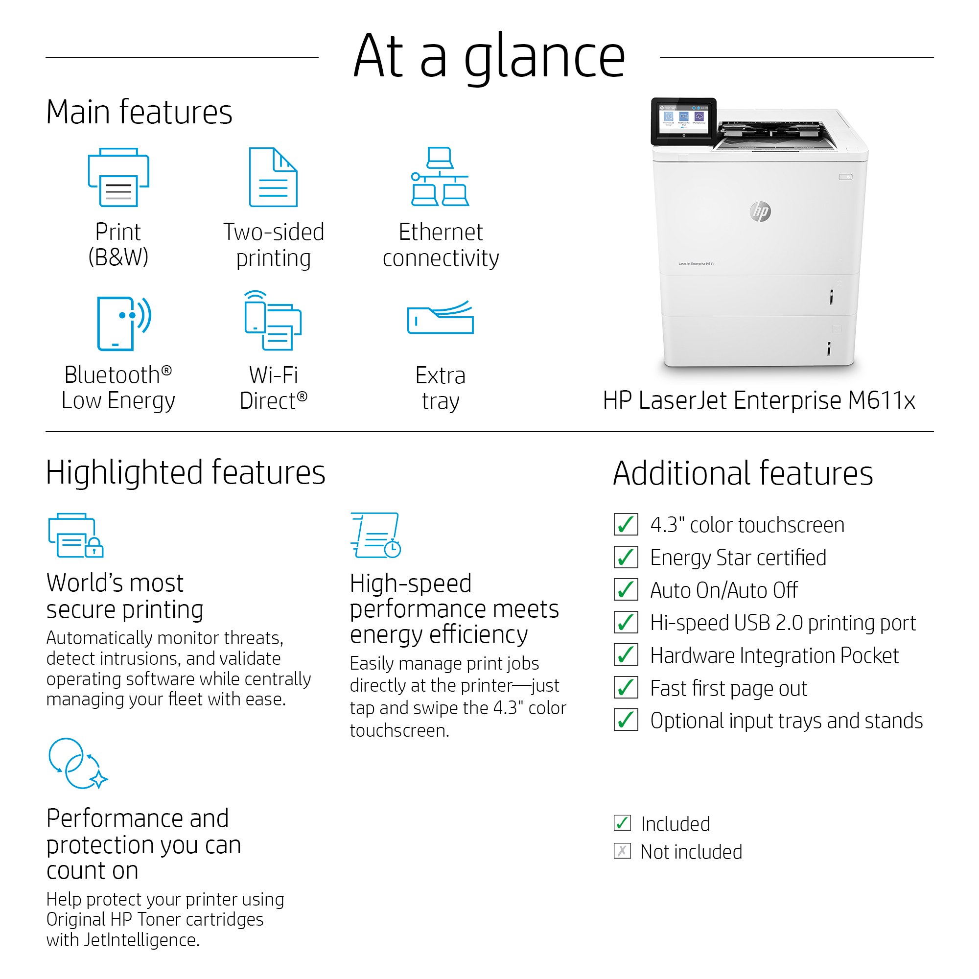 HP LaserJet Enterprise M611x Wireless Black and white Printer, Duplex
