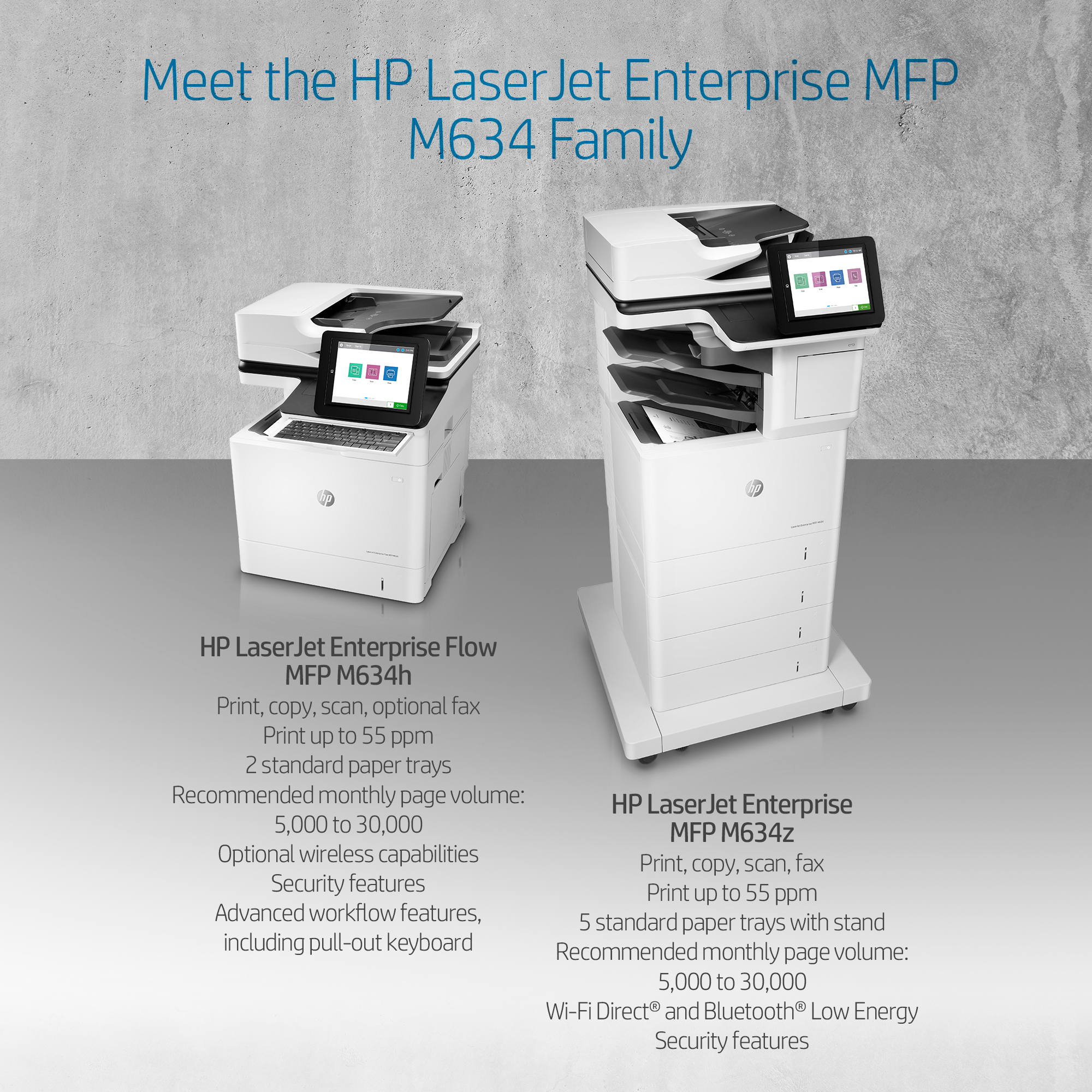 HP LaserJet Enterprise M634z Wireless Multifunction Black and white Printer, Copier, Scanner; Duplex