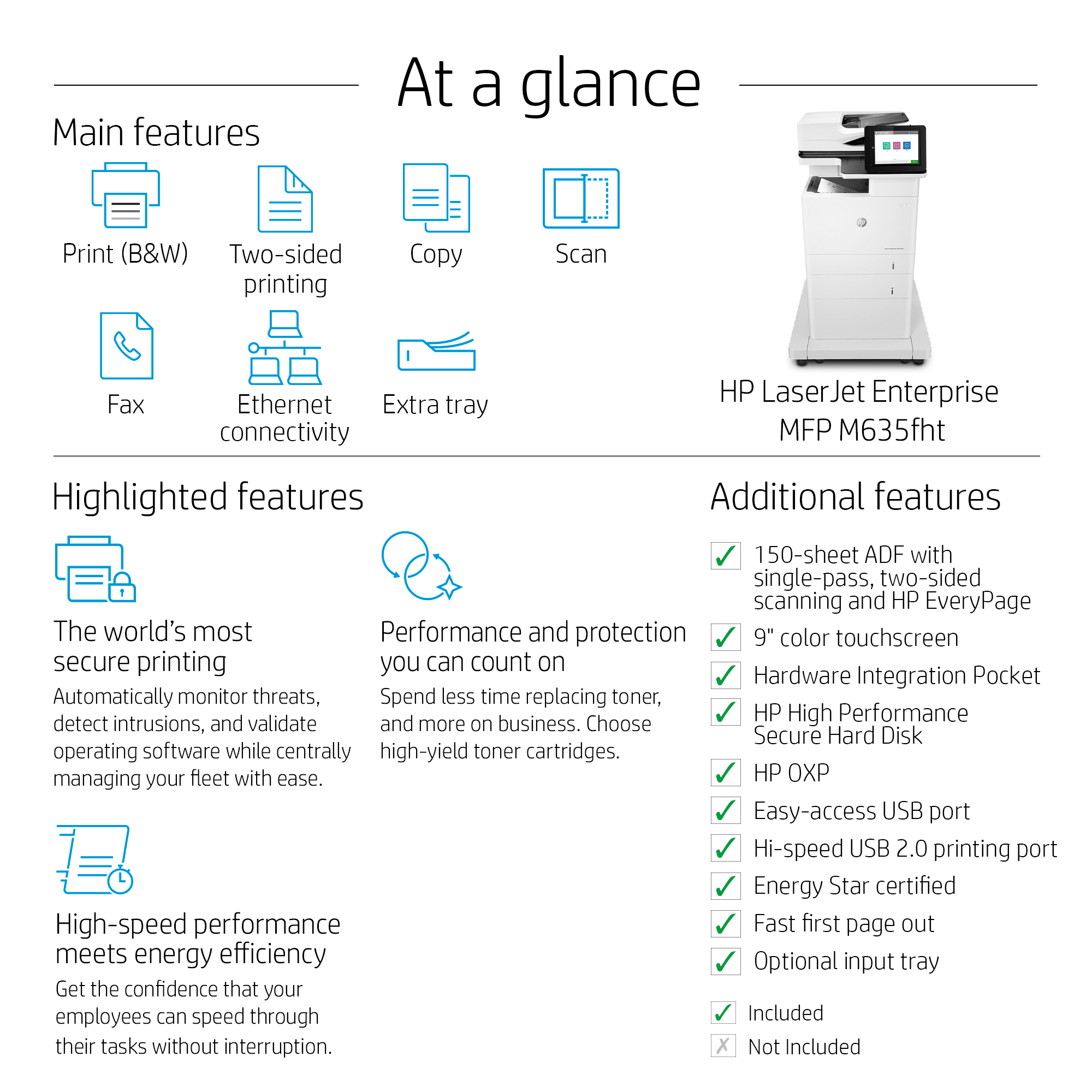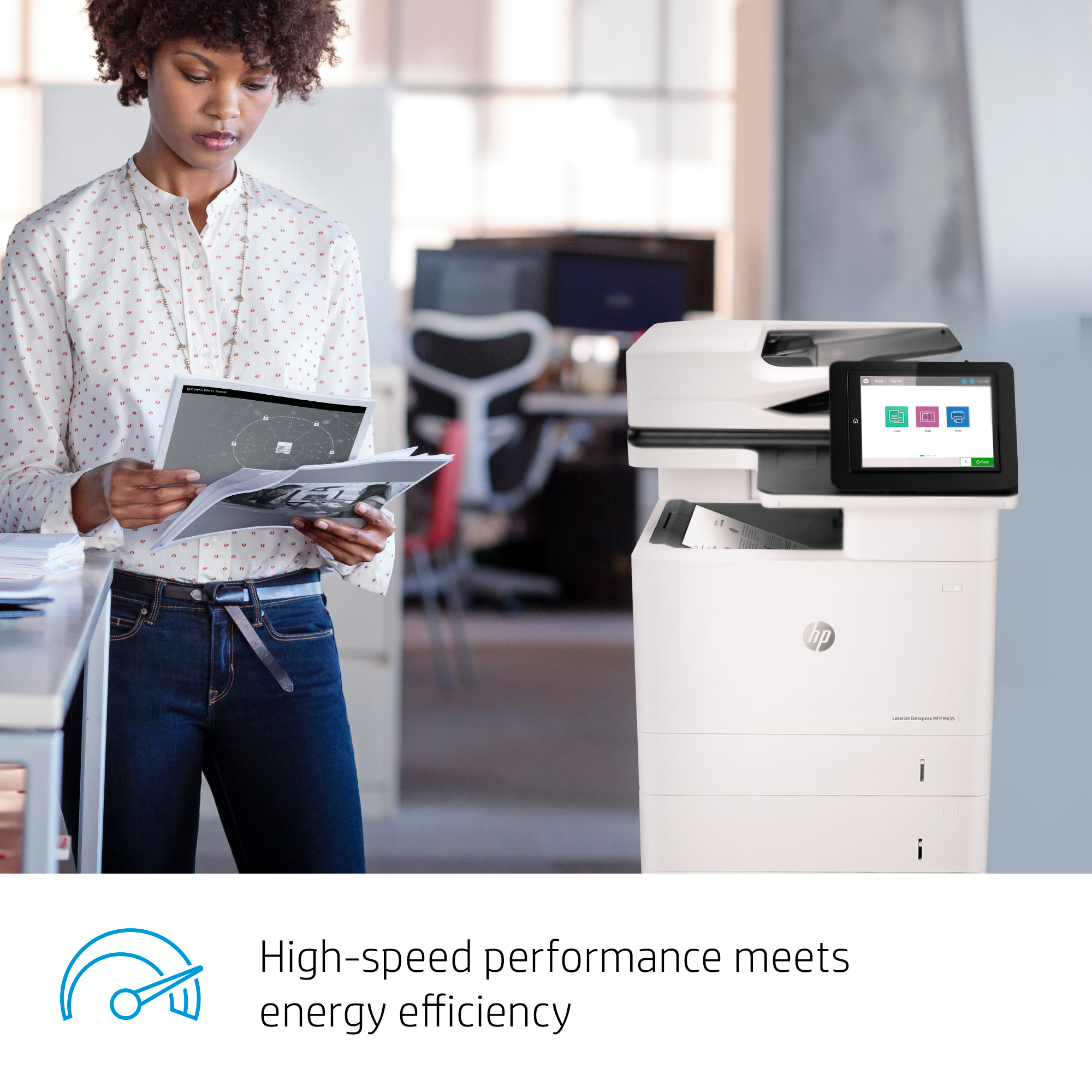 This MFP wakes up and prints your first page fast—in as quickly as 8 seconds.[4]