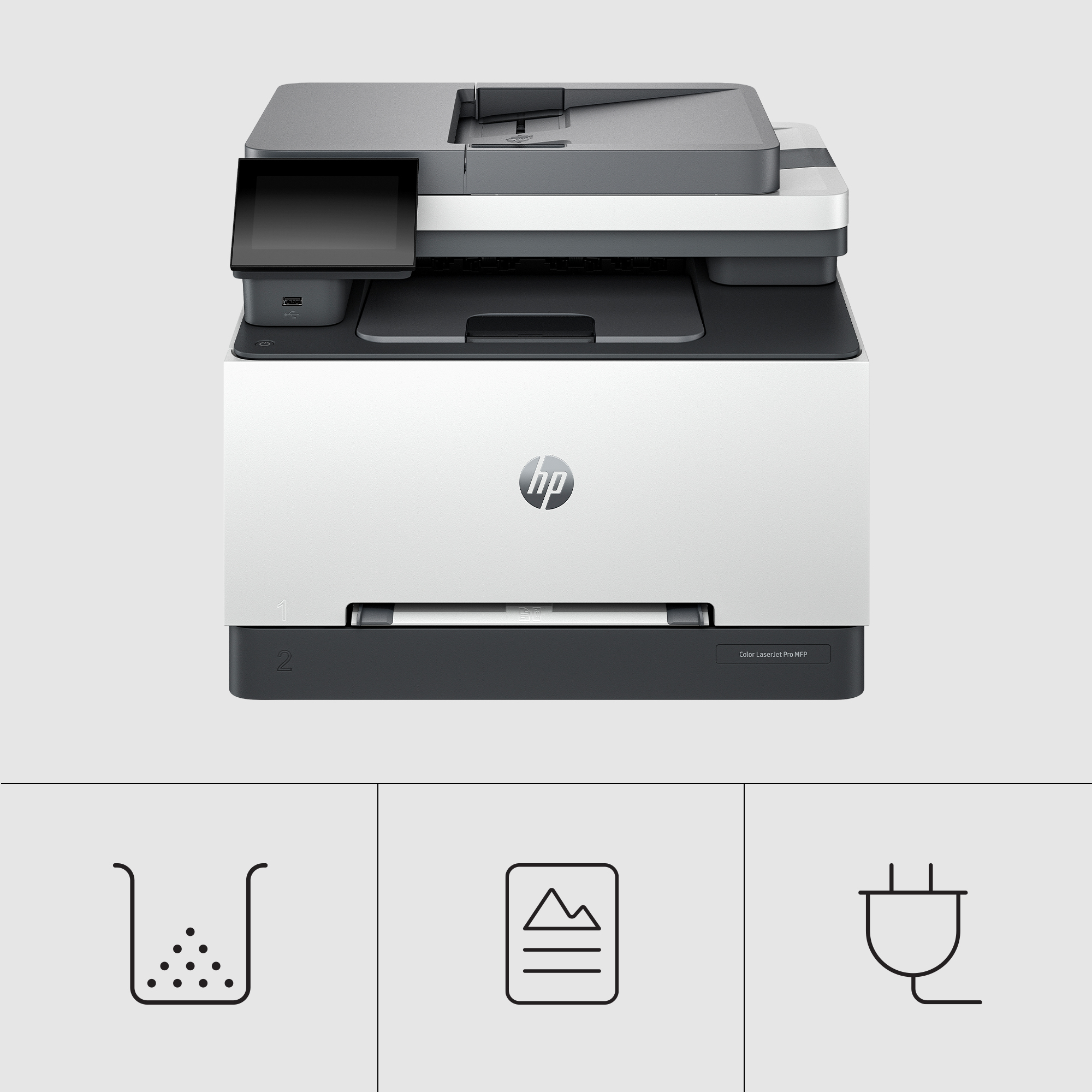 | Box contents | HP Color LaserJet Pro MFP 3301sdw; Power cord; Toner cartridge; User Guide; Flyers |