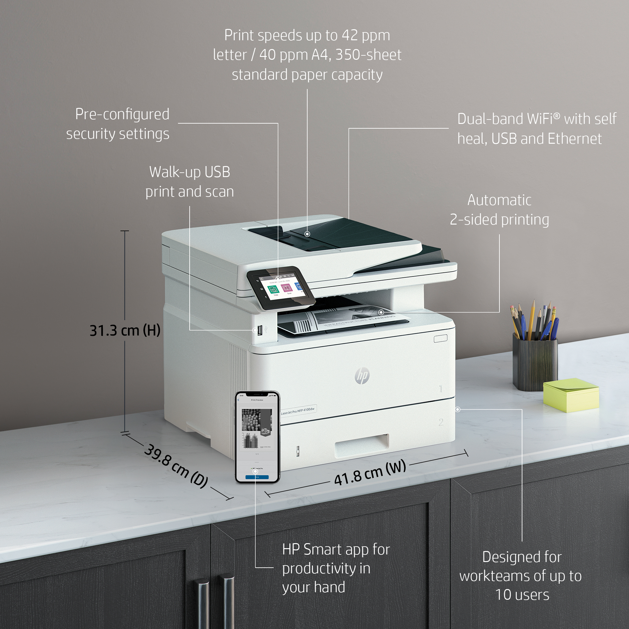 HP LaserJet Pro 4101fdw Wireless Multifunction Black and white Printer, Copier, Scanner; Duplex