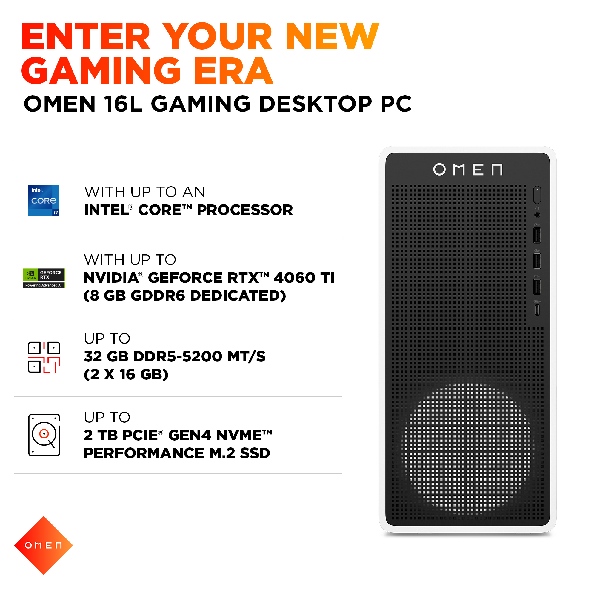 With high-speed data transfer, the 1 TB PCIe Gen4 NVMe M.2 SSD offers lightning fast speed and efficient storage.<sup>[9]</sup>