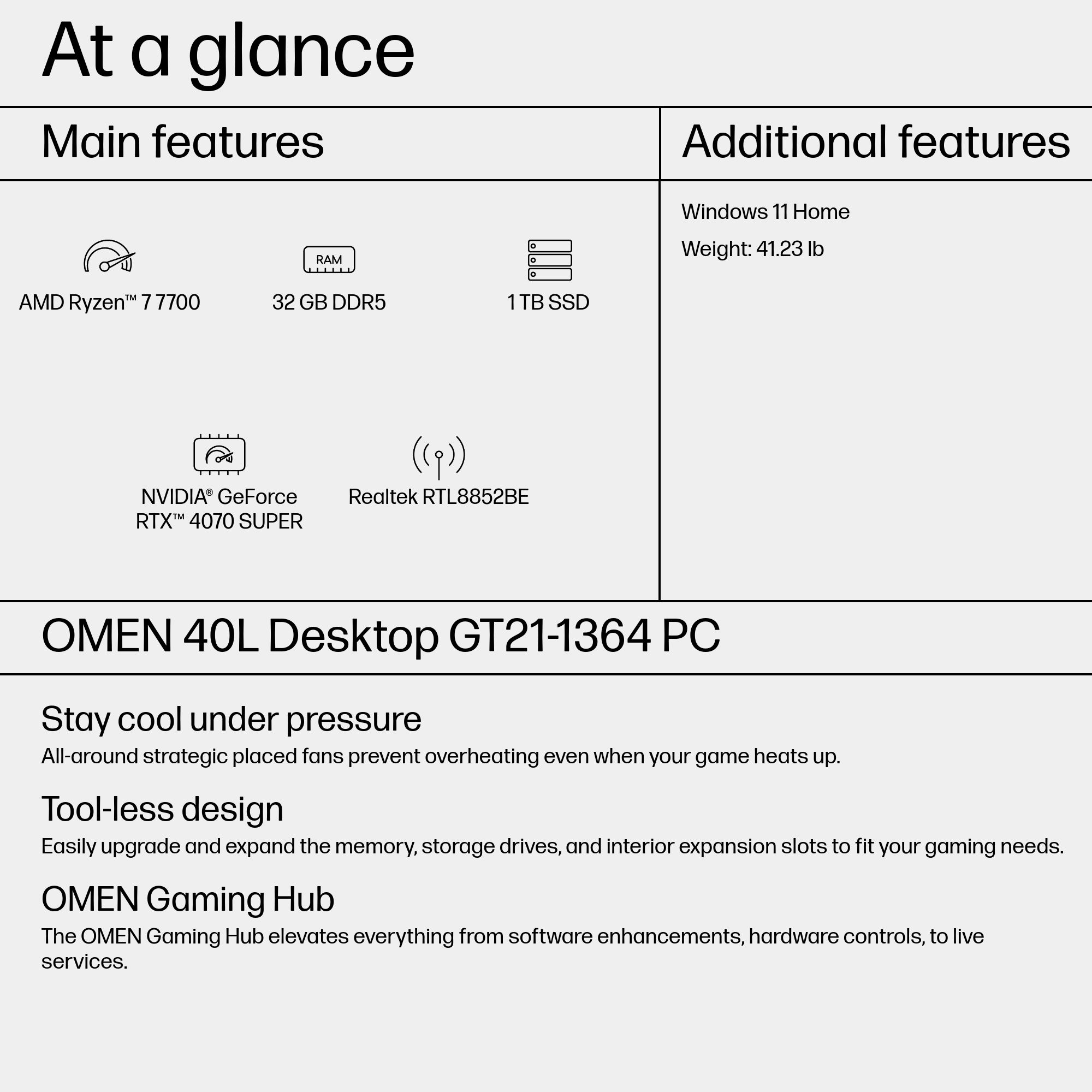 HP OMEN 40L GT21-1364 AMD Ryzen™ 7 7700 32 GB DDR5-SDRAM 1 TB SSD NVIDIA GeForce RTX 4070 SUPER Windows 11 Home Tower PC Black