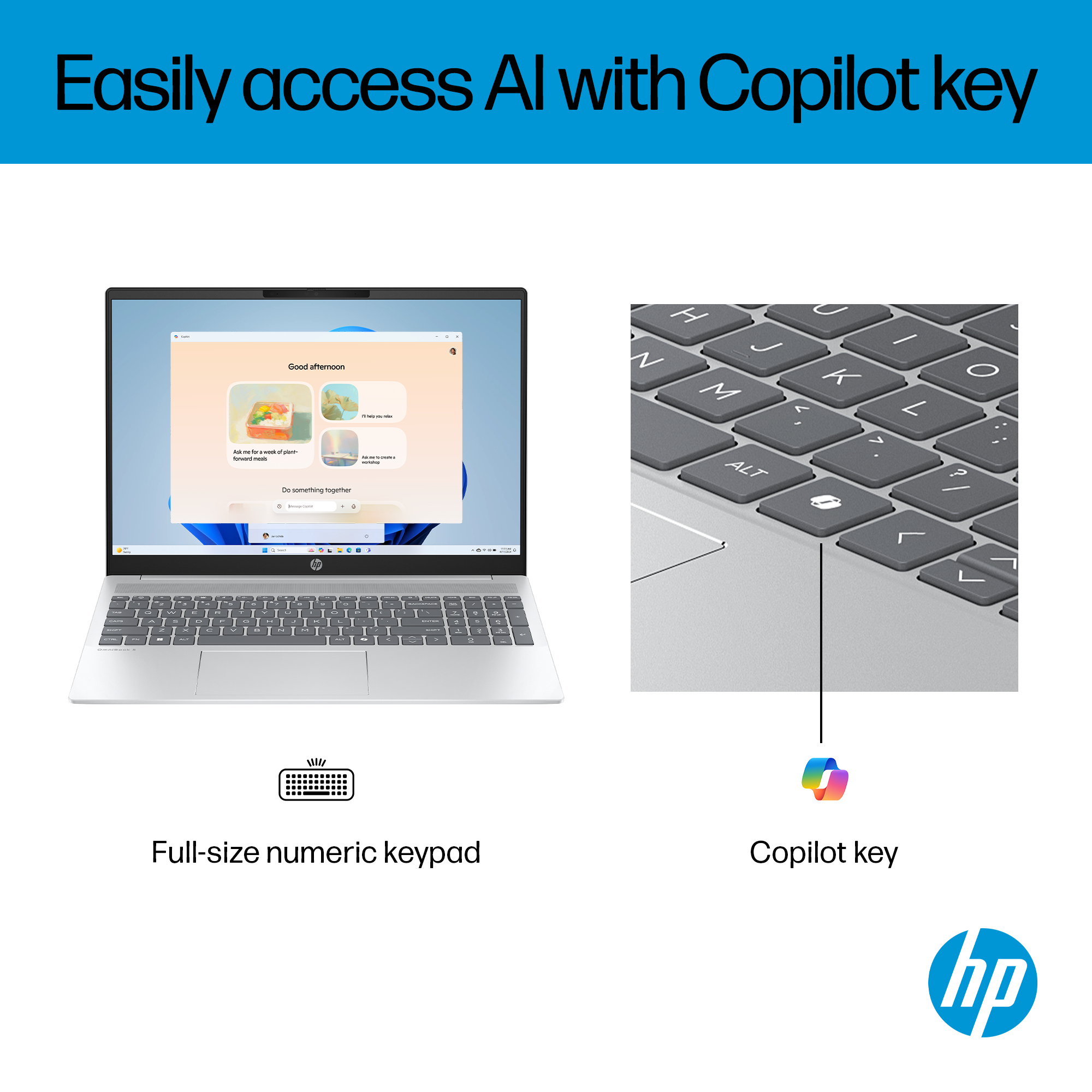 Stay productive on the go with an Intel® Core™ Ultra Processor<sup>[1]</sup>, HP Fast Charge<sup>[2]</sup> and Copilot hotkey<sup>[4]</sup>.