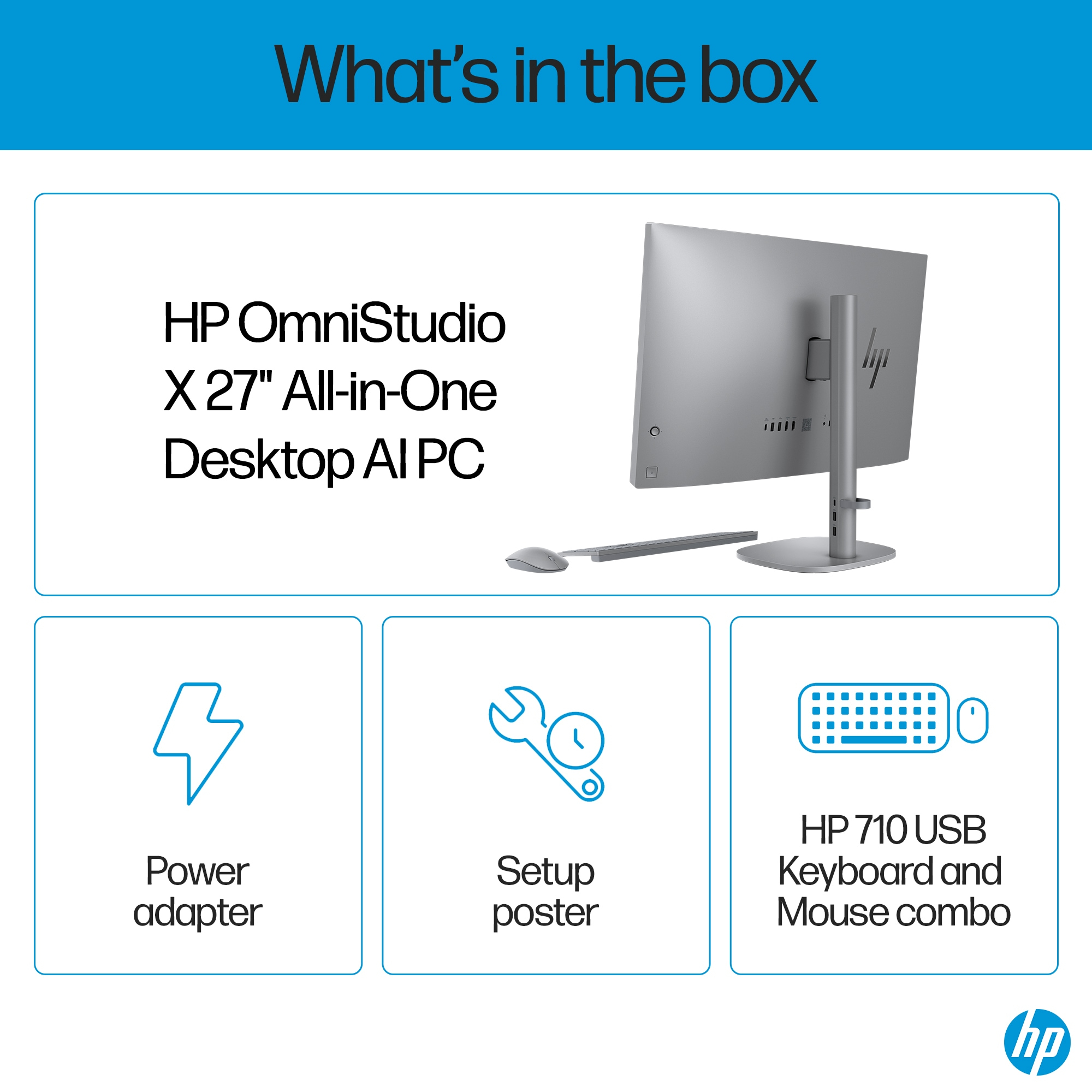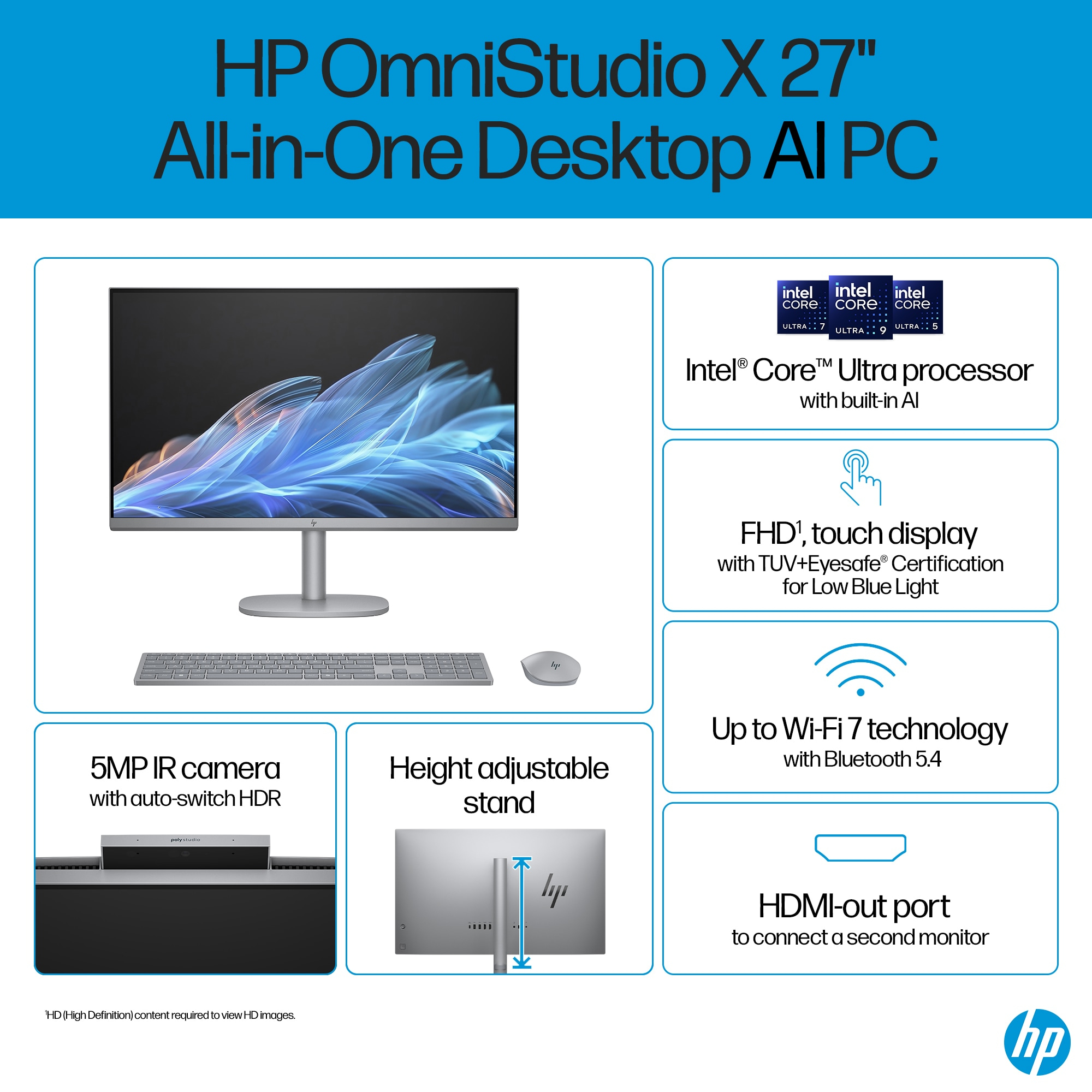 HP OmniStudio X 27-cs0010 Intel Core Ultra 7 155H 27" 1920 x 1080 pixels Touchscreen All-in-One PC 16 GB DDR5-SDRAM 1 TB SSD Windows 11 Home Wi-Fi 6 (802.11ax) Silver