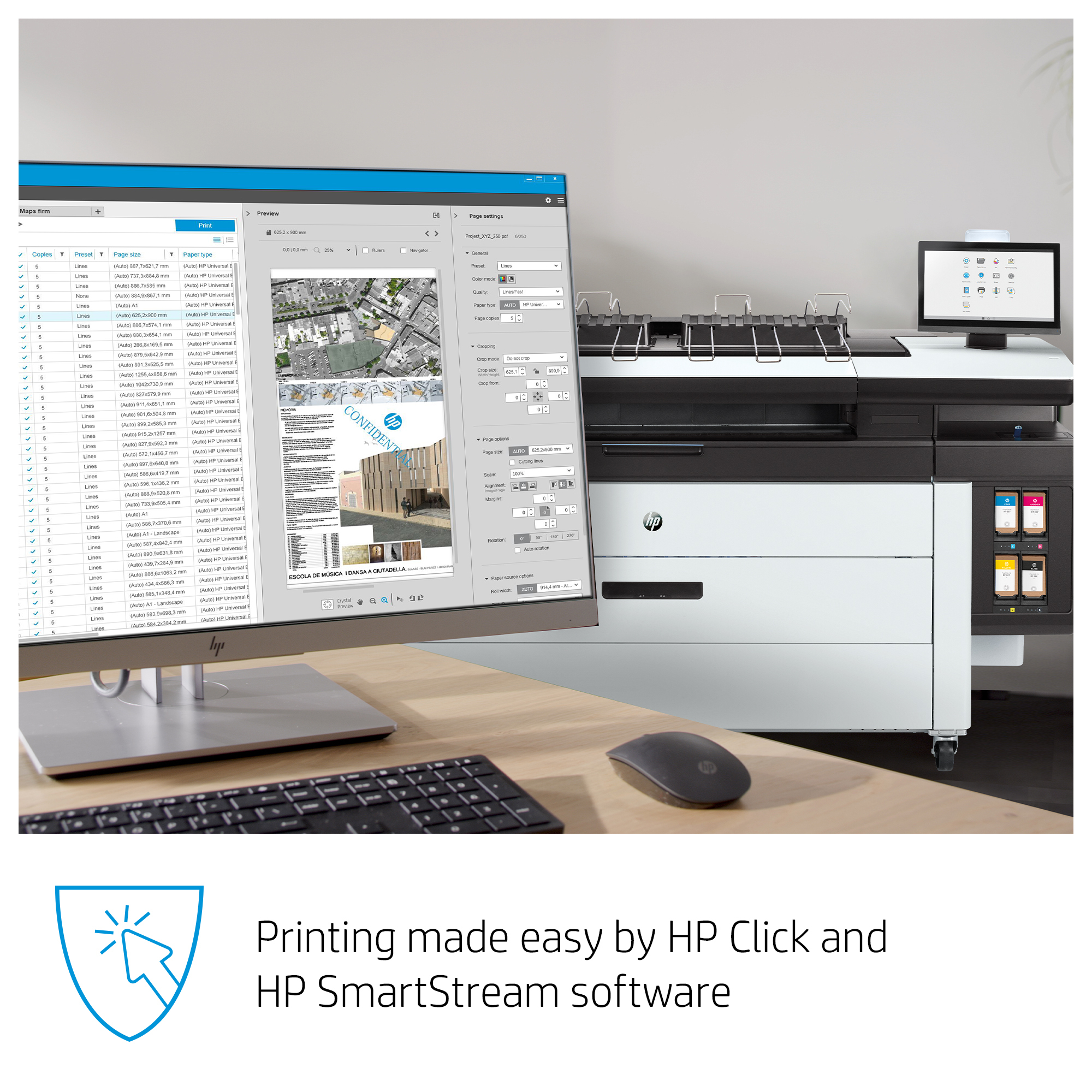 Easy printing and workflow efficiency with HP Click, HP SmartStream software.
