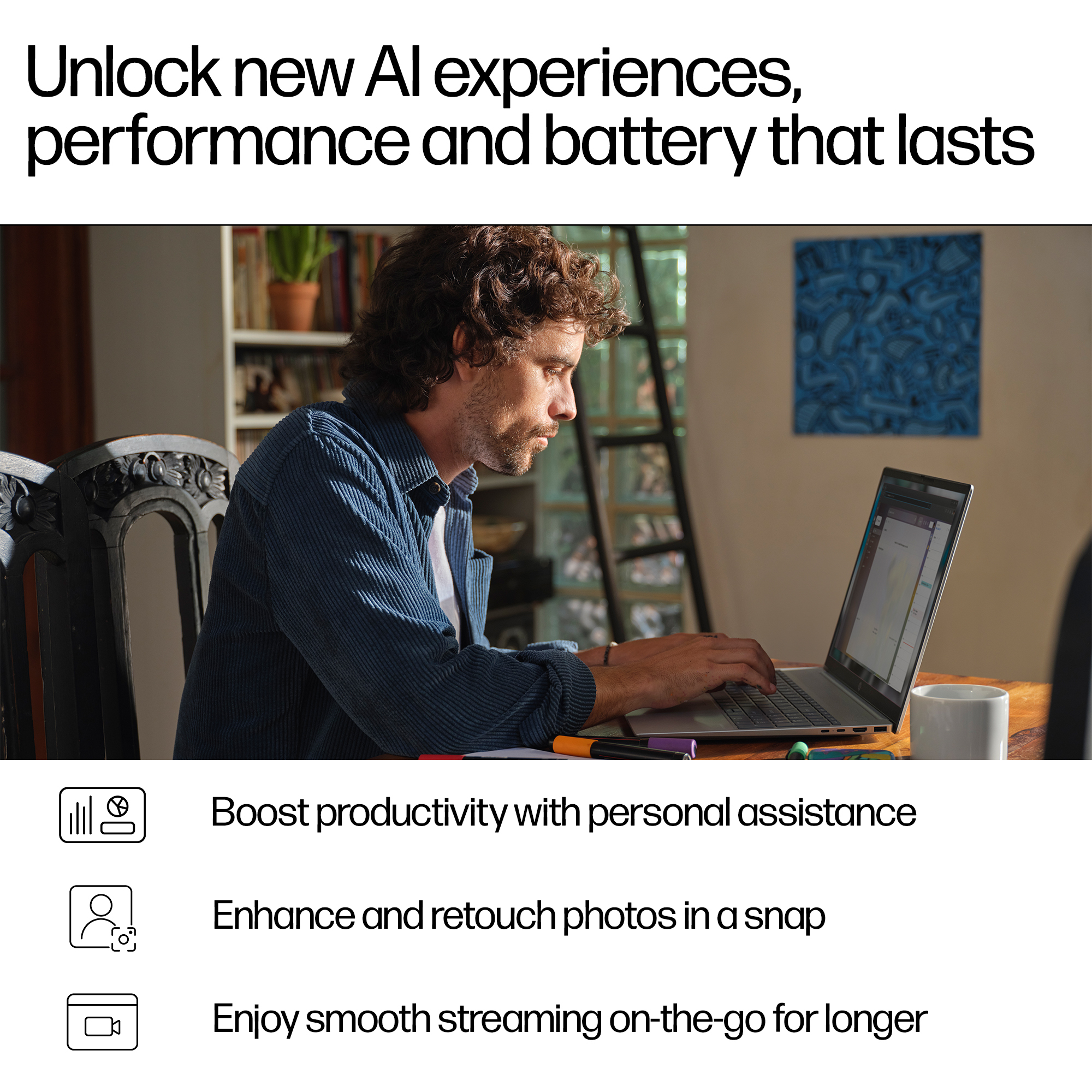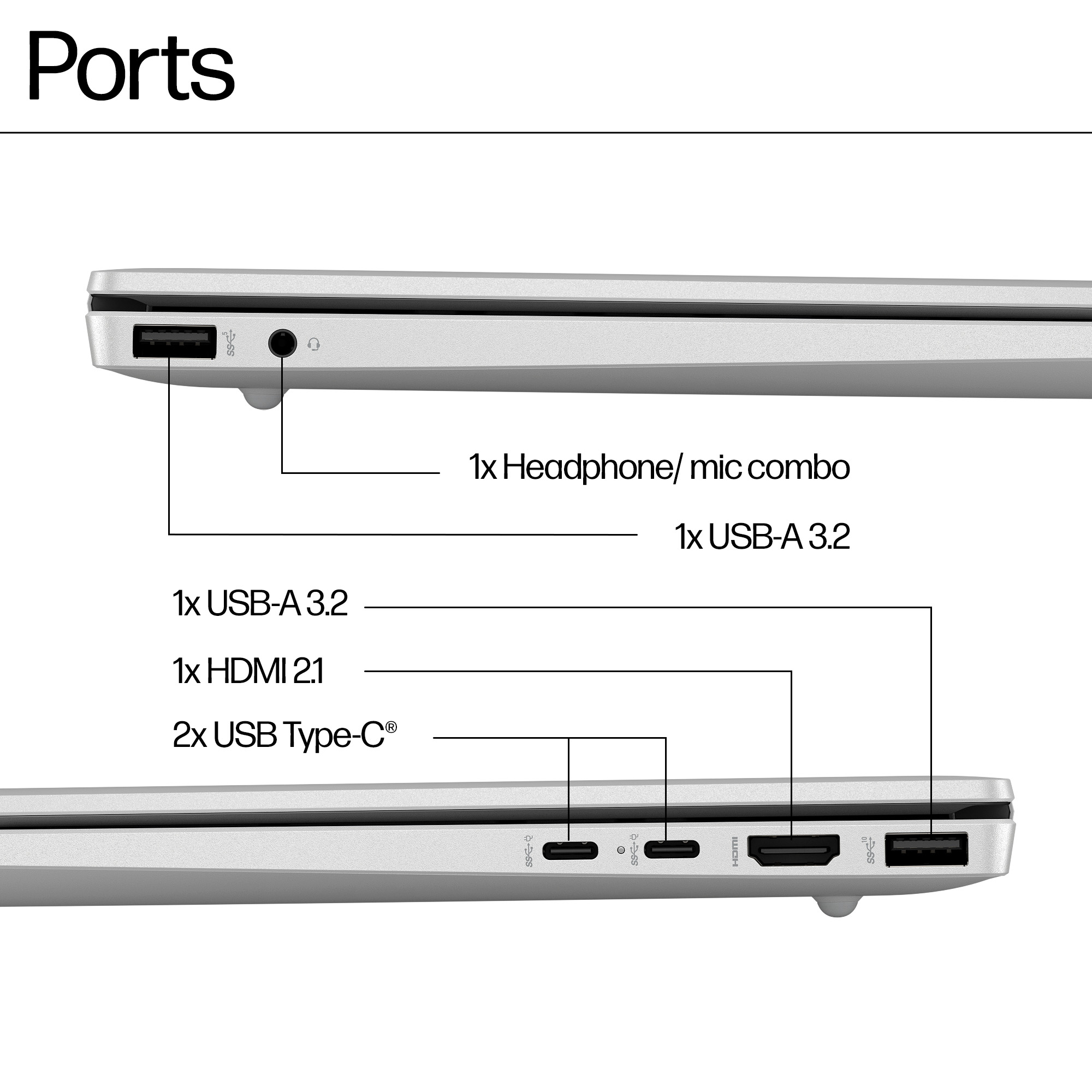 Amp your productivity with an Intel® Processor<sup>[1]</sup>, HP Fast Charge<sup>[2]</sup>, larger touchpad and expanded port lineup.